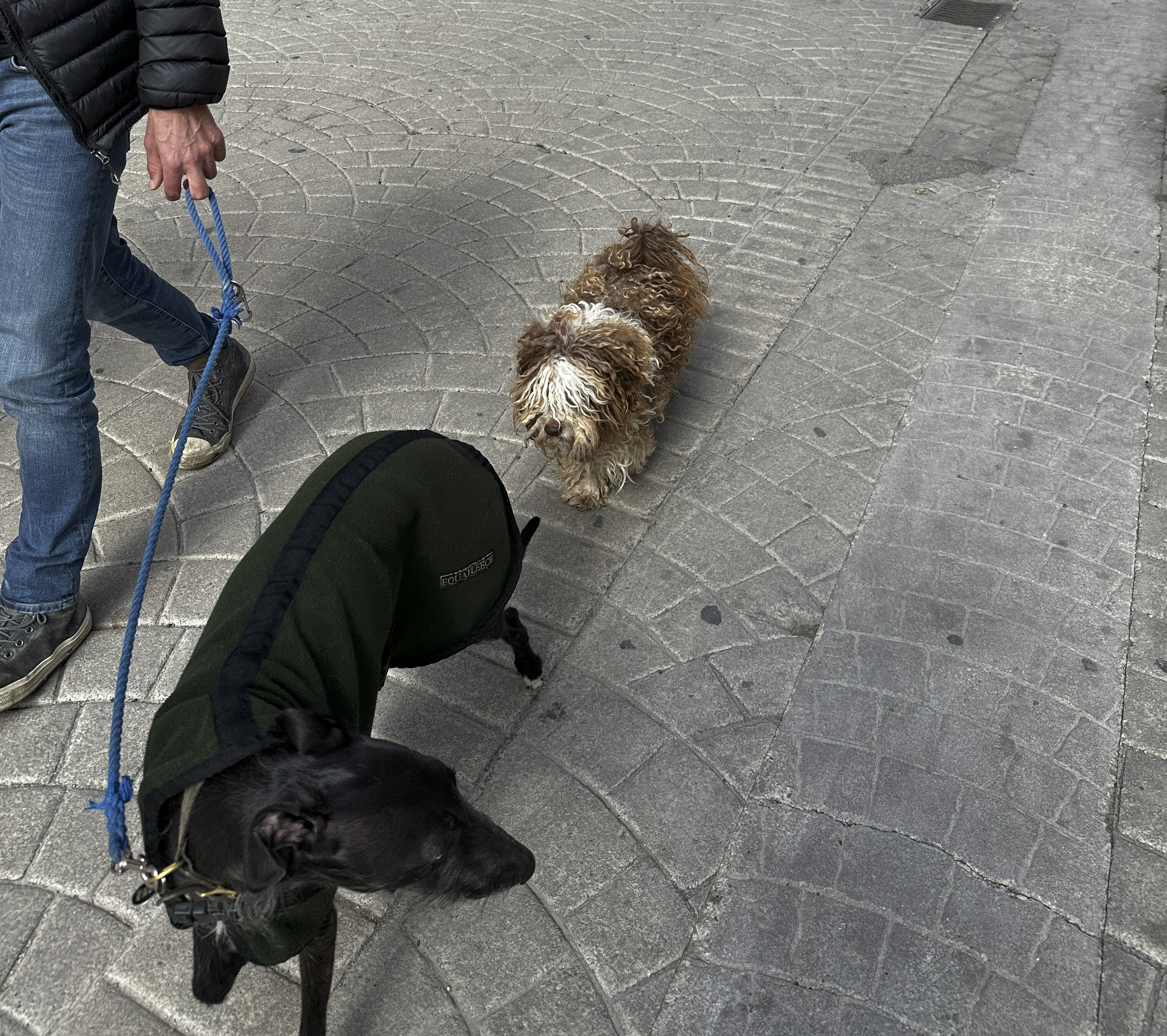 Almansa is probably one of the busiest towns we’ve been to since landing in Barcelona, and the planned day off has encouraged our friends from Hebden Bridge, Charles and Catherine, to come over for some sight seeing and a coffee-crawl. They spend UK winters in their apartment in Dénia so it’s not as far out of the way as it may sound. They have Flash with them, one of the most pathetic dogs you could meet, and we enjoy a nice day out.