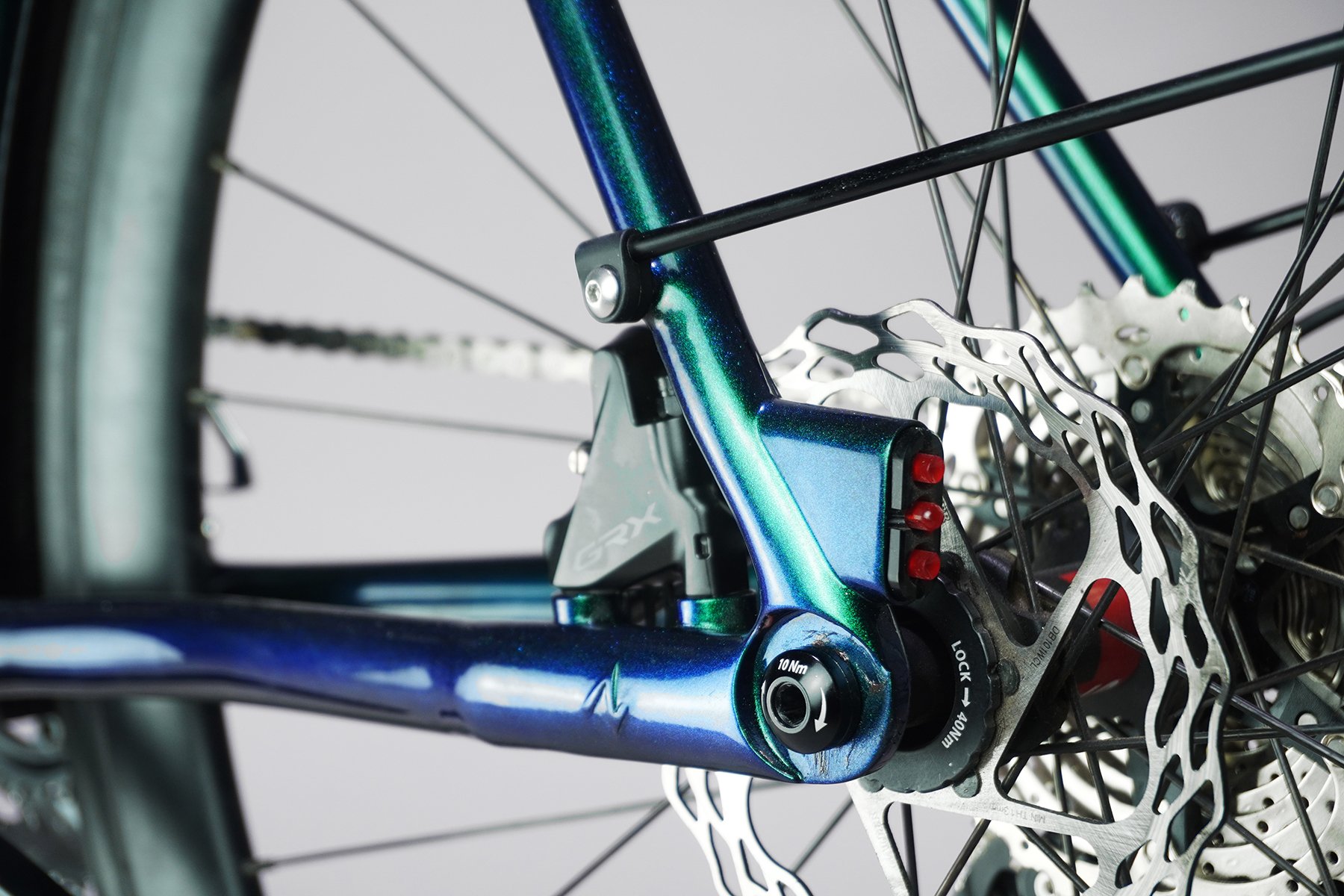 The choice of the truss fork allows you to gain comfort, by filtering vibrations during the long kilometers ridden by our client, but also during gravel practice. Its parallelogram structure also provides very good resistance to disc braking, especially if the bike is loaded when traveling. The Fork was designed partly in stainless steel 3D printing then with Columbus stays, allowing very good quality mechanical resistance, as well as a contained weight.
