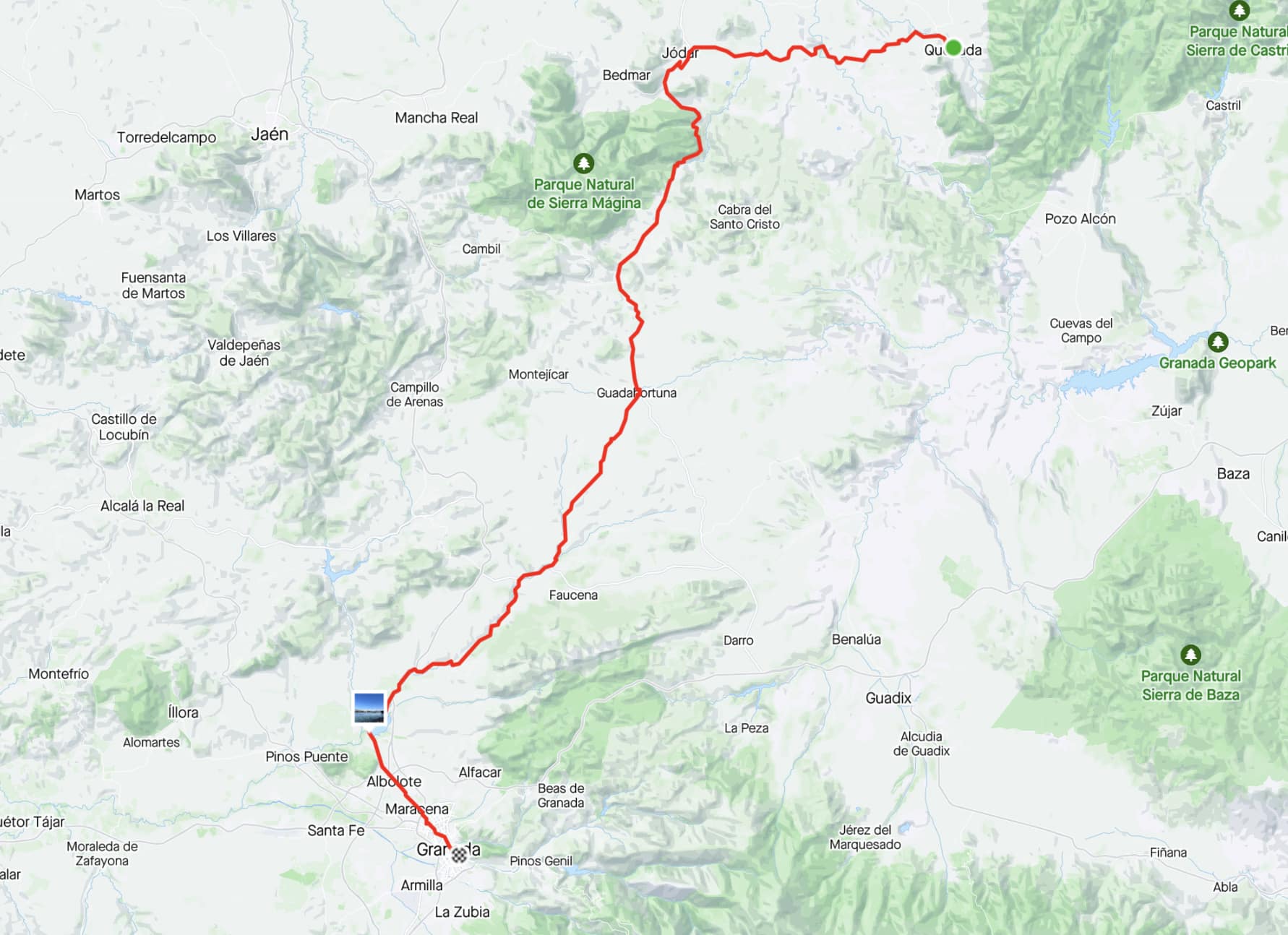 Today’s ride starts with a descent away from Quesada, which is great in the moment but it also makes the first hill of the day feel like gravity has increased. We’ve got stunning views to keep our wheels turning, and despite the snow storm warnings fresh in our minds, the sky is clear. It’s very cold though, so keeping moving is both favourable yet really challenging given the load in our legs after almost two weeks on the bike.