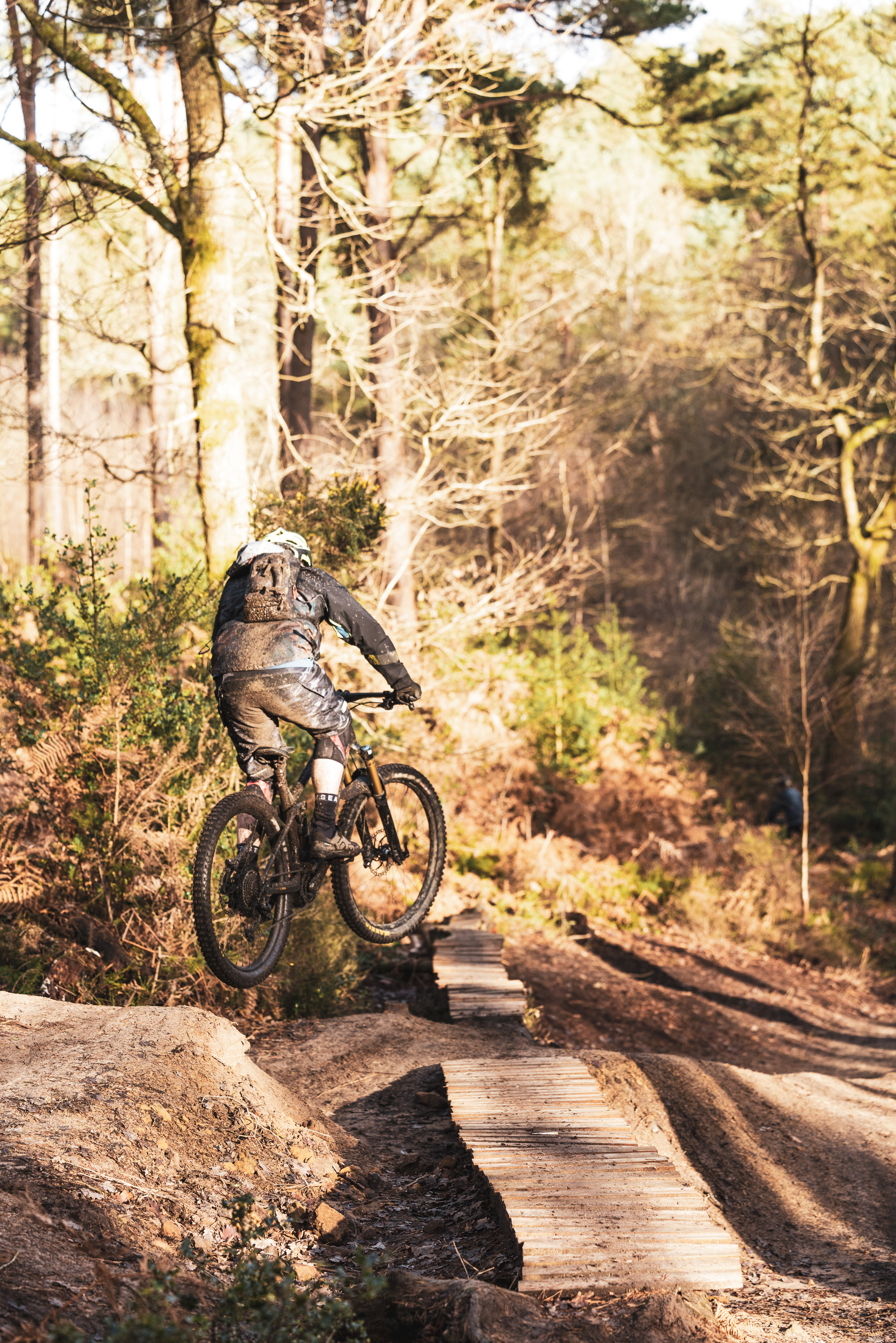 If you’re new to the area, if you’re a regular rider here or even if you live here, the access issue can be a bit confusing. Here’s a brief insight: the Hurtwood is privately owned (there are nine landowners in total) and public access is managed by the Friends of the Hurtwood (FoTH) charity. In 1926 the original landowners entered into a Deed of Dedication which gave the public access to the land on foot and horseback (and now bicycle). This is still in place although access on foot has subsequently been enshrined into law by the CRoW Act 2000.Users on horseback and bicycle have access to the bridleways, unofficial tracks and firebreaks – but everything we ride is shared with other users. This even applies to those tracks that have names, berms and jump lines (added with landowner permission and crafted by a splendid team of local volunteer trail builders, but still not exclusive to mountain bikers). In other words, the Hurtwood is not a bike park and, before anyone suggests it, there’s absolutely no intention on the part of the landowners to turn it into one. So be nice, say hi, expect the unexpected and be prepared to give way to other users at all times.