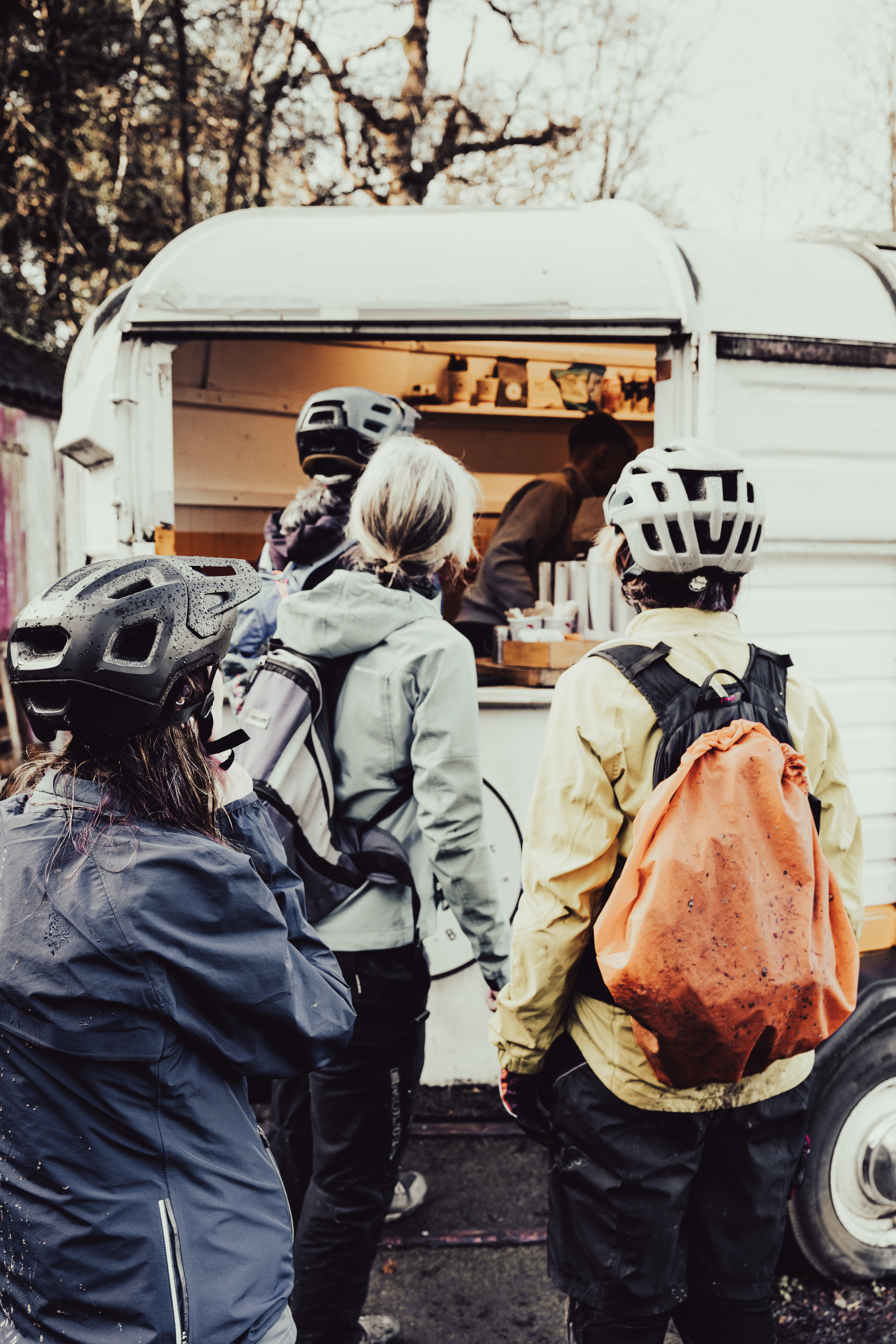 Another climb and a loop around takes us into Holmbury St Mary – an idyllic village with two pubs and home to Heartwork, our favourite coffee bar, which is based in a former farmyard and operates out of a horse box. You can enjoy your coffee inside the rustic barns or outdoors, with a choice of ancient upholstered armchairs, bar stools or just a straw bale to sit on. The coffee here is so good that road cyclists make it a destination. And we all know how fussy they are.