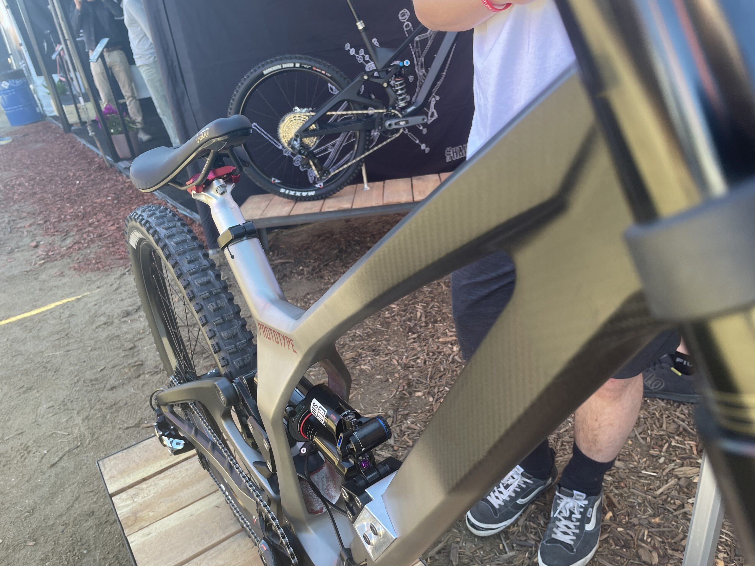 We’ve got some prototype parts on here. We’ve got a prototype direct mount stem and the prototype downhill bar. So there’s some specific shapes, some shape-specific stuff that we’ve been working on specifically for compressive stress and trying to lower the compressive stress on the handlebar to change the failure modes. And then we’ve also got some downhill laminate wheels right now that we’re testing out. And I believe that’s sort of it for the moment.