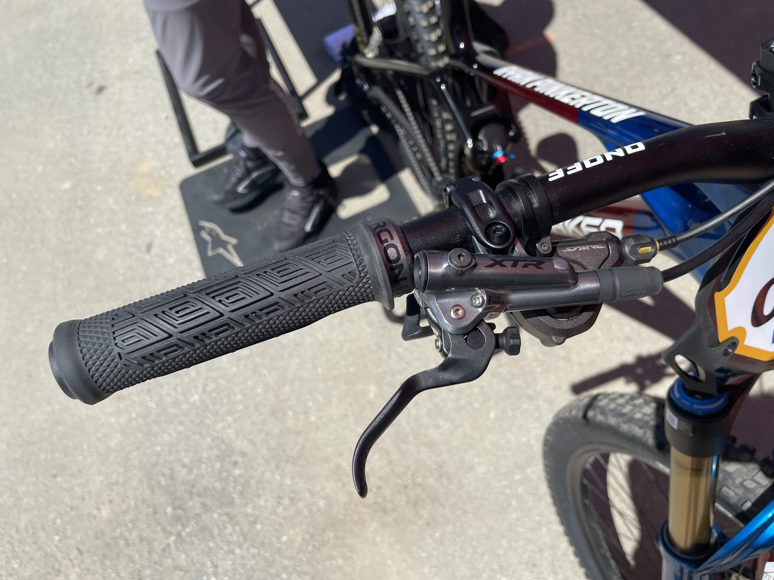 So my bike for the Sea Otter Downhill is the Raze Carbon. Normally it’s full 29 but for this race we have it in the mullet. And yeah this thing shreds! Tyre pressure I run 26 PSI in the front and I think 30 PSI in the rear. Fork pressures I don’t know exactly because we changed it a little bit, and I haven’t really done much setting up on this bike, so I don’t know those exactly, but otherwise I’ll say anything, not too worried about sharing it!