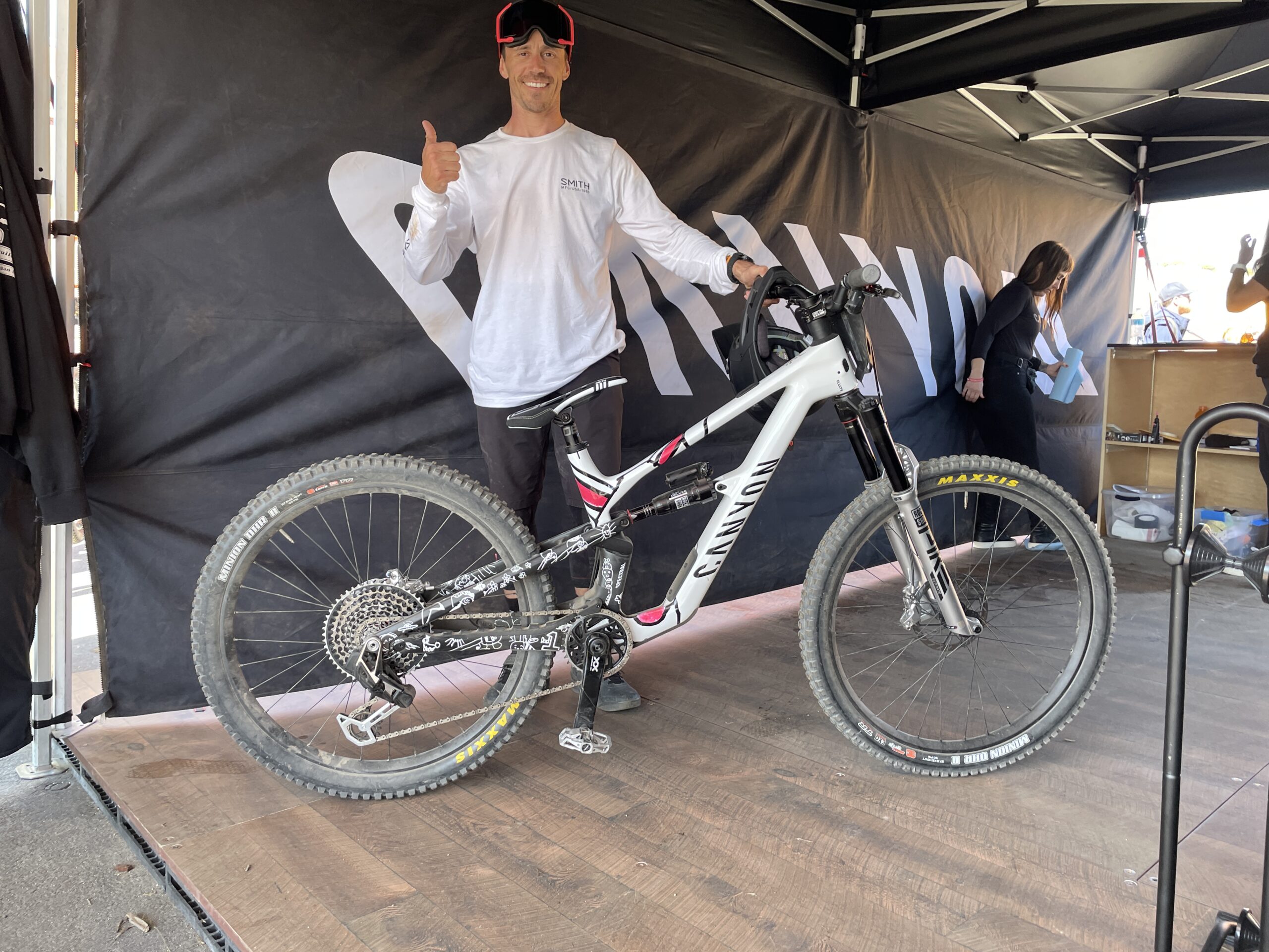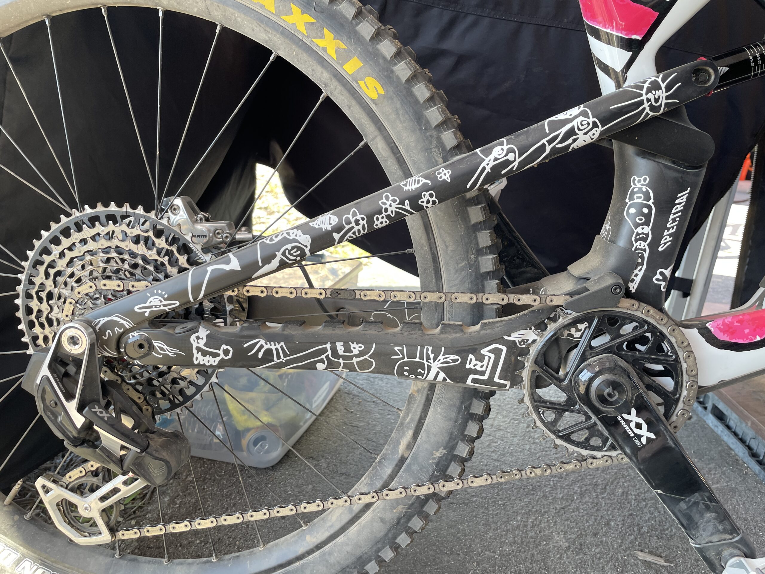 So this is the Spectral that you’re riding here with your kids’ drawings on it, is it a Spectral:ON that you’ve been doing the practice on as well?