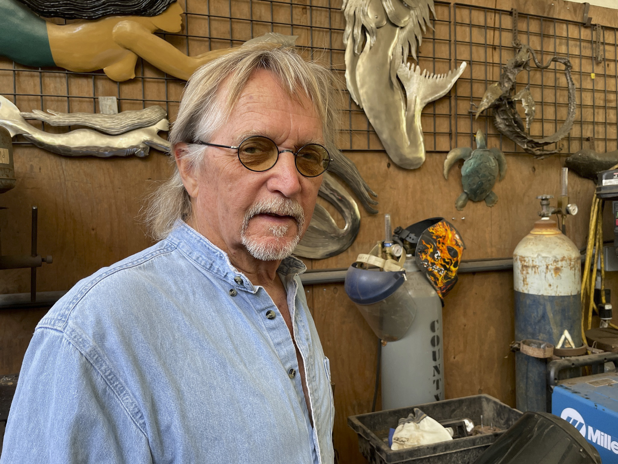 Bob: I’m just starting to book for spring and summer… they do archery, hike, camp and most of them go into the workshop in small groups and you cut out a starfish or a seahorse with a plasma cutter and then we have fun because that’s how I teach… And I love doing that. I just finished a lecture at the university here in Santa Cruz on the way I approach 3D forming – cold forming – and make all my whales and otters and stuff… I really like teaching; it’s a time in my life where I want to share my skills that I learned from my father, pass those on. I’m very serious about that.