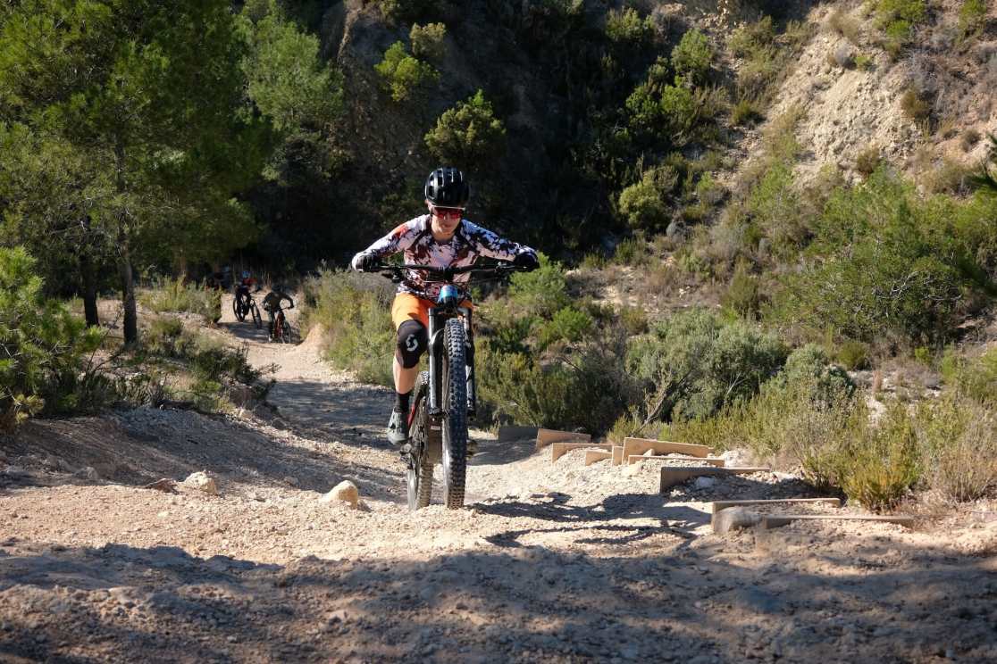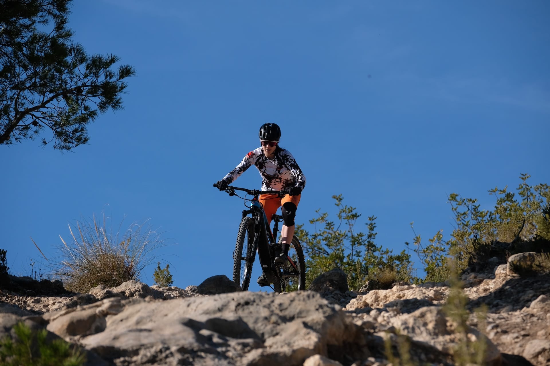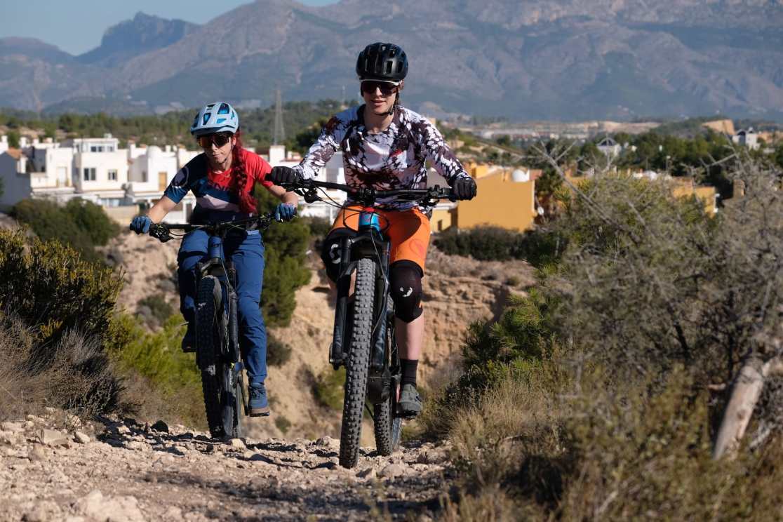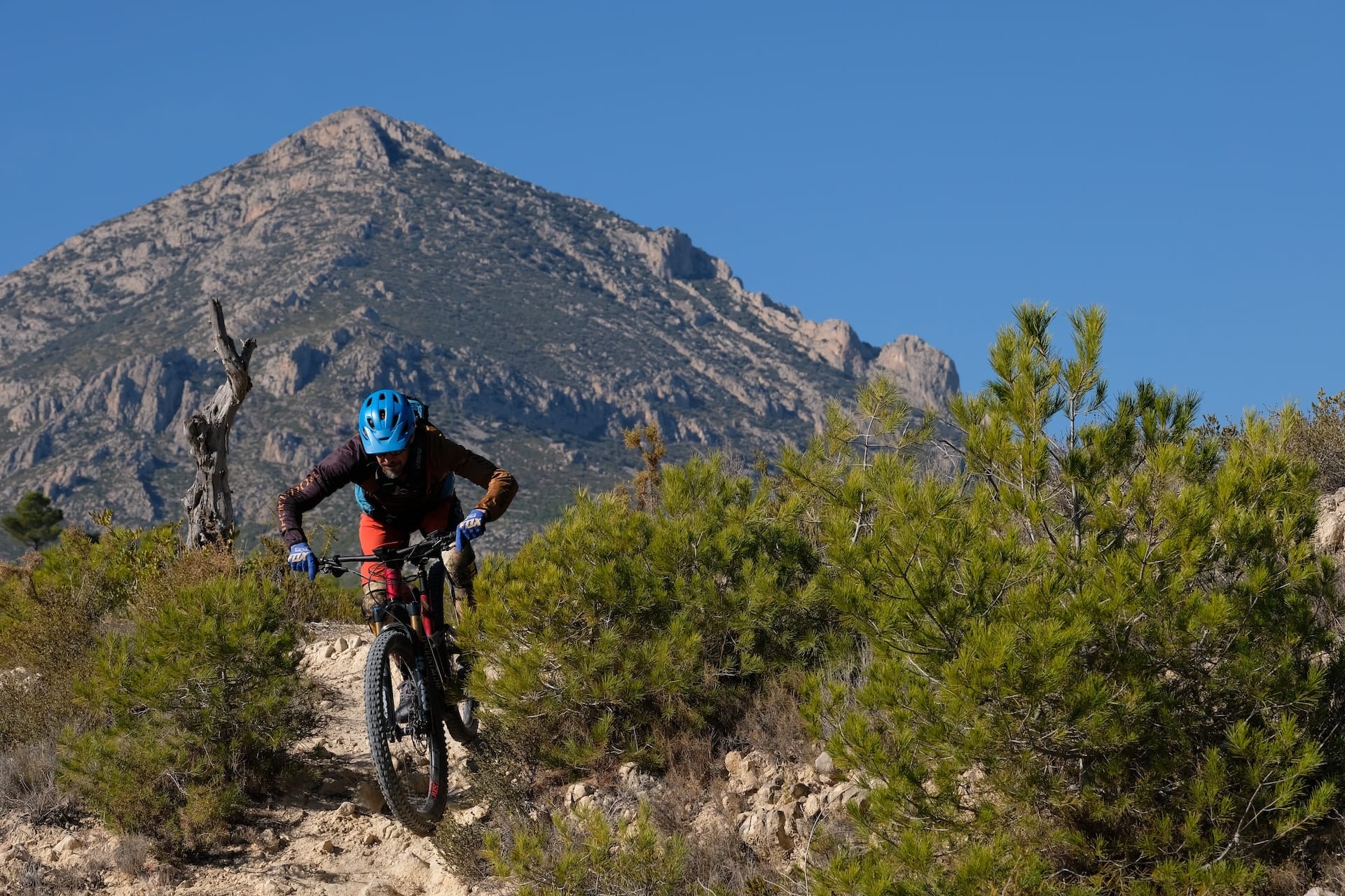 We’re all riding ebikes today. Once we start, there’ll be no shuttles and we’re on a long loop below the gaze of Puig Campana (say ‘Push Campana’), the 1,400m hulking peak that looms over Benidorm. We start near the tellingly named ‘Urbanizacion Montecasino’ and ‘Urbanizacion Convent de Les Monges’, their tiled roofs and ‘swimming pool per house’ layout, modern caricatures of the traditional villages just a few kilometres inland.