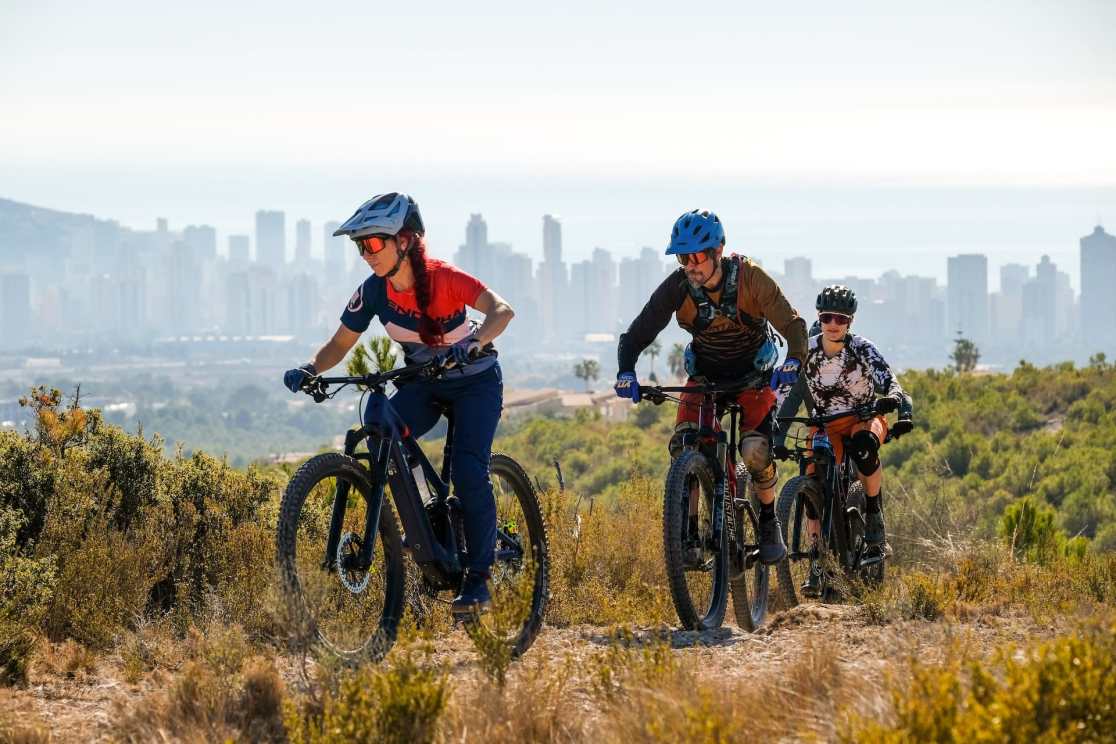 We climb sociably – ebikes make conversational climbing a given as everyone rides together, regardless of fitness – and soon we’re leaving all traces of urbanisation behind. Unless, that is, we look behind, where the concrete towers of Benidorm sit heavy in the warm January haze.