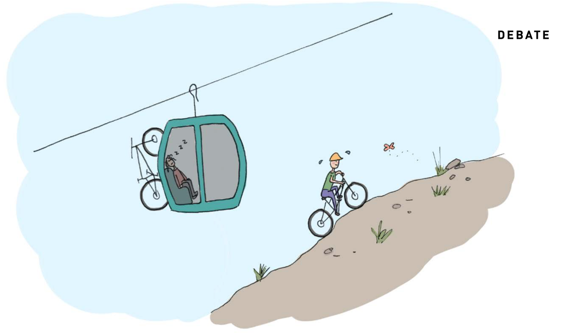 Chipps: I went ski mountaineering for the first time this winter. Two hours of skinning up snowshoe trails for two runs down a green piste. And I loved it, probably much to the bemusement of the colourfully attired people getting off ski lifts wondering why we were appearing out of the woods out of breath and wearing Lycra. I’m a fan of cycling climbs, cycling alongs and cycling descents. I’m equally average at all three, but I do think that rides need the ups in order to appreciate the downs. Otherwise, cycling risks falling into a future of ‘Here’s where you pay to do your sport, make sure you follow the arrows’ simply because no one will know how to navigate, climb mountains or bother to turn pedals any more.