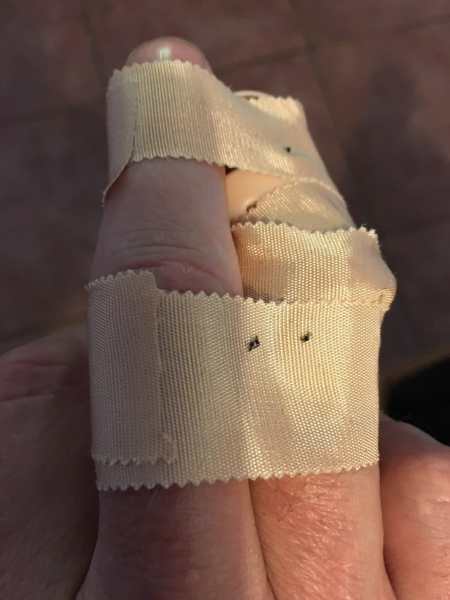 April 2017. End of day one on a three-day Lake District trip we’d been planning for ages. Survived a day of damp rock, aspirational route choices, poorly chosen lines and the odd stack-ette, mostly deciding that big rock would go a lot better by foot. Still feeling pretty good about myself, I winched myself into the back of my mate’s T4 at the exact moment he slammed the door. Where my hand was hanging onto the ‘A’ pillar. The van collective of non-medics assured me it wasn’t broken. I was keen to head to Keswick A&E on Friday night but ‘Stella-rised’ the wound in the bar instead. Couldn’t help noticing my index finger had gone a) floppy from the knuckle and b) black. Taped them together for riding the next day during which my forks exploded. Ignored continuing blackness/droopiness to hire a fat bike for the Borrowdale Bash on the final day. Do remember my hand hurting quite a lot on that trail.