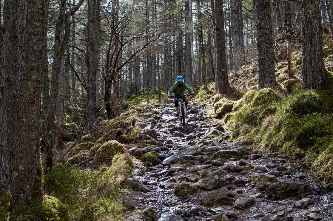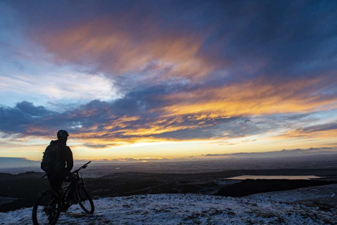 Start at the Ben Ledi car park, pass the lodges on the road and climb the fire road to the walkers’ path until the fence line. This is where the hikeabike starts. Once on Mullach Buidhe, you’ll be back on the pedals and can enjoy a rattle off the top at warp speed. There’s little cover anywhere on the hill, so go prepared. You’ll notch up 15 miles and 2,500ft in both directions.