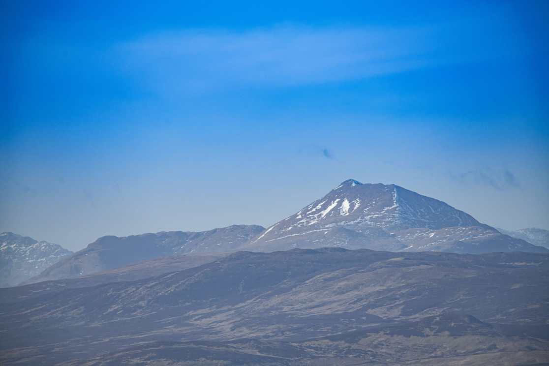At only 418m in height, Dumyat is one of Scotland’s smaller offerings but punches well above its weight despite this. You can drive up most of it, should the need arise. This isn’t to say you can drive off-road but there is a road that passes the actual hill path start. Anyone else can choose to climb the hill from Bridge of Allan where the steep faces of Dumyat’s southern flank make this a punchy number indeed.
