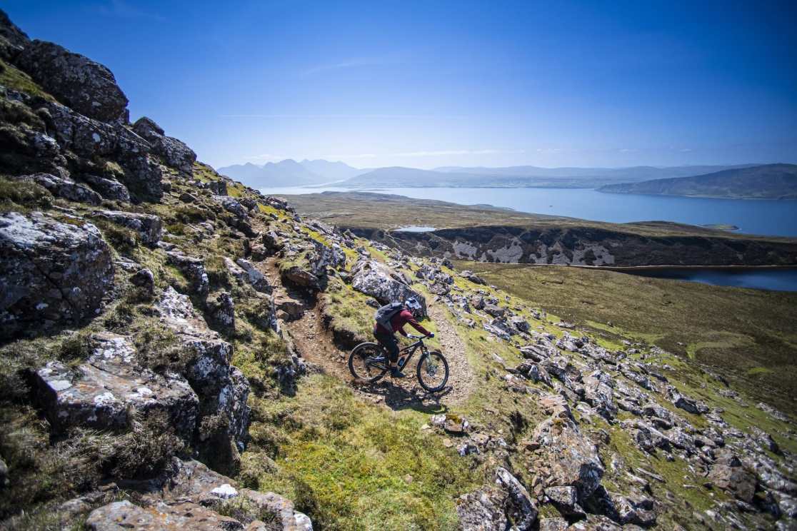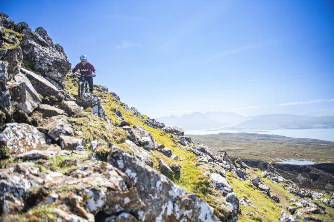 Once off the road, this out and back is a treat. The lower slopes are mostly rideable before you pass a small lochan. The closer to the summit you reach, the less rideable it gets. Once on the flat top of Dùn Caan, you’ll have to keep an eye on the time for the last ferry, and the other on the views that will never get old. Applecross and Torridon to the east, the Cuillin and Trotternish ridges to the south-west and north-west, and the rest of north-west Scotland in every other direction.
