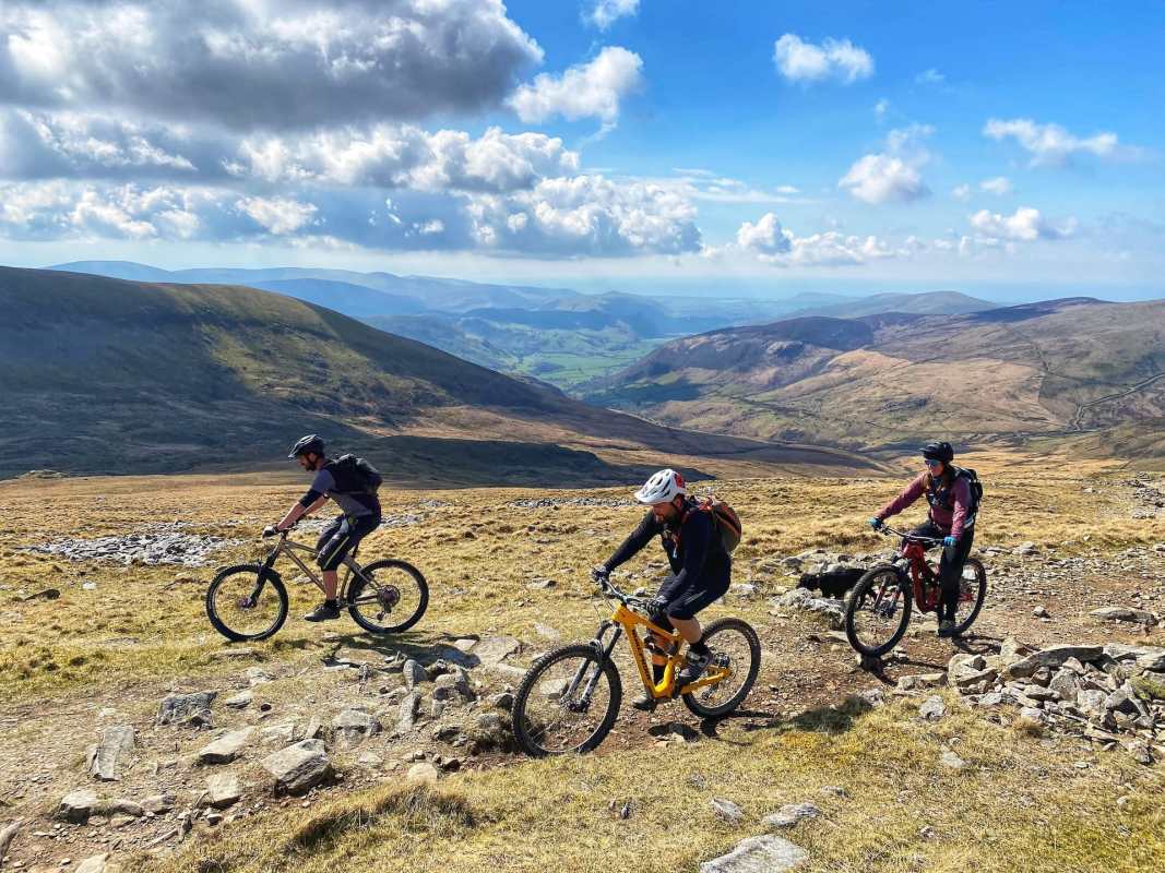 A few offer some sweet singletrack, and also some wider sections that follow old horse and cart tracks that access the old dry stone wall fields. The climb is about 350m vertical from the road to the summit, a bit of a push on a normal bike or all-goer on an ebike. Look out for the multiple false summits that trick you into thinking you’re almost there.