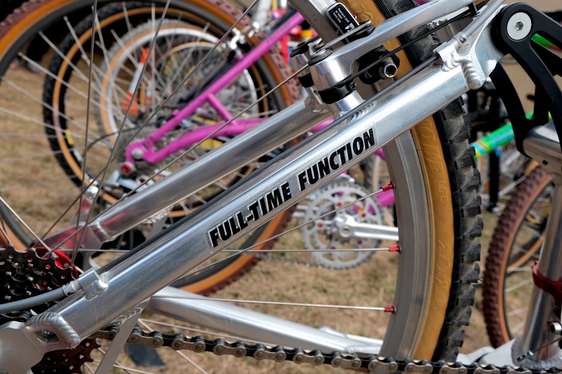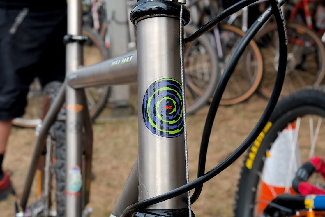 So, there’s another Bontrager race light with Manitou forks and a different paint job with some White Industries hubs on a lovely wheel set. There’s a Mk 1 Santa Cruz Heckler, a Kona Explosif from 2000. It’s a bit newer.