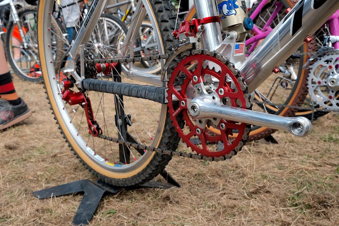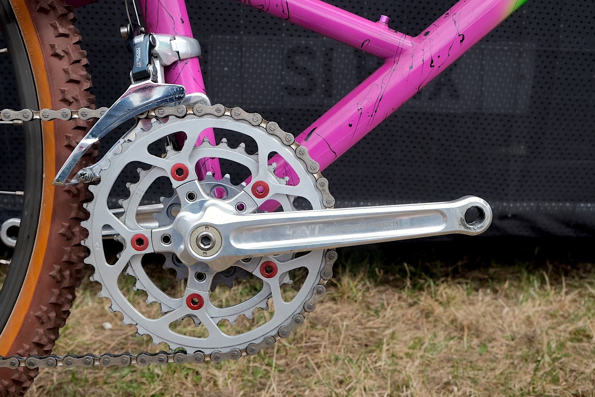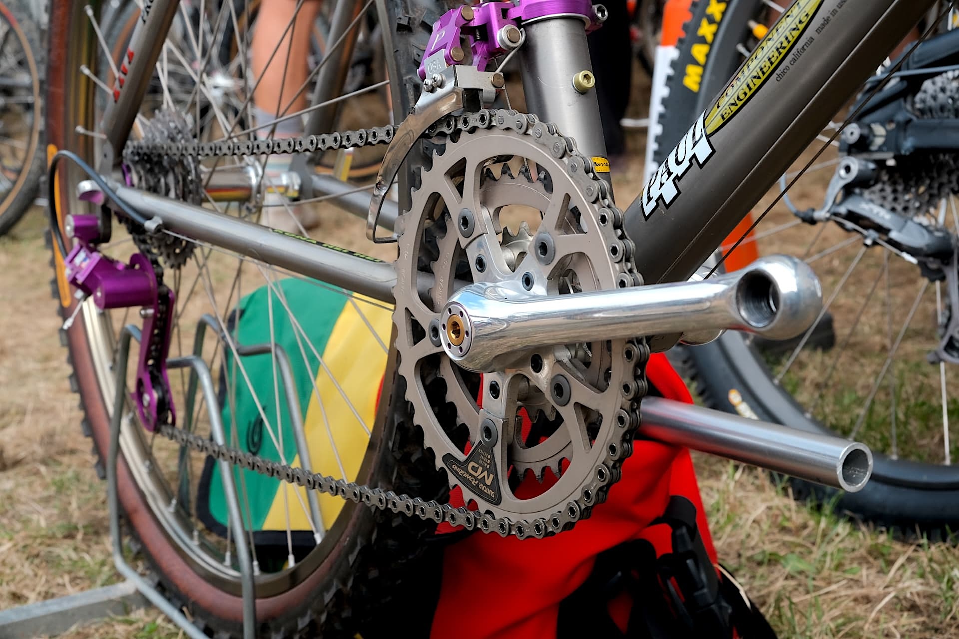 And the Bullseye cranks, again a little bit before my time, they just fetch crazy money and people are always after them. And that came in the collection and I just had to fit it to this one. And a really odd and rare Mavic chain ring.
