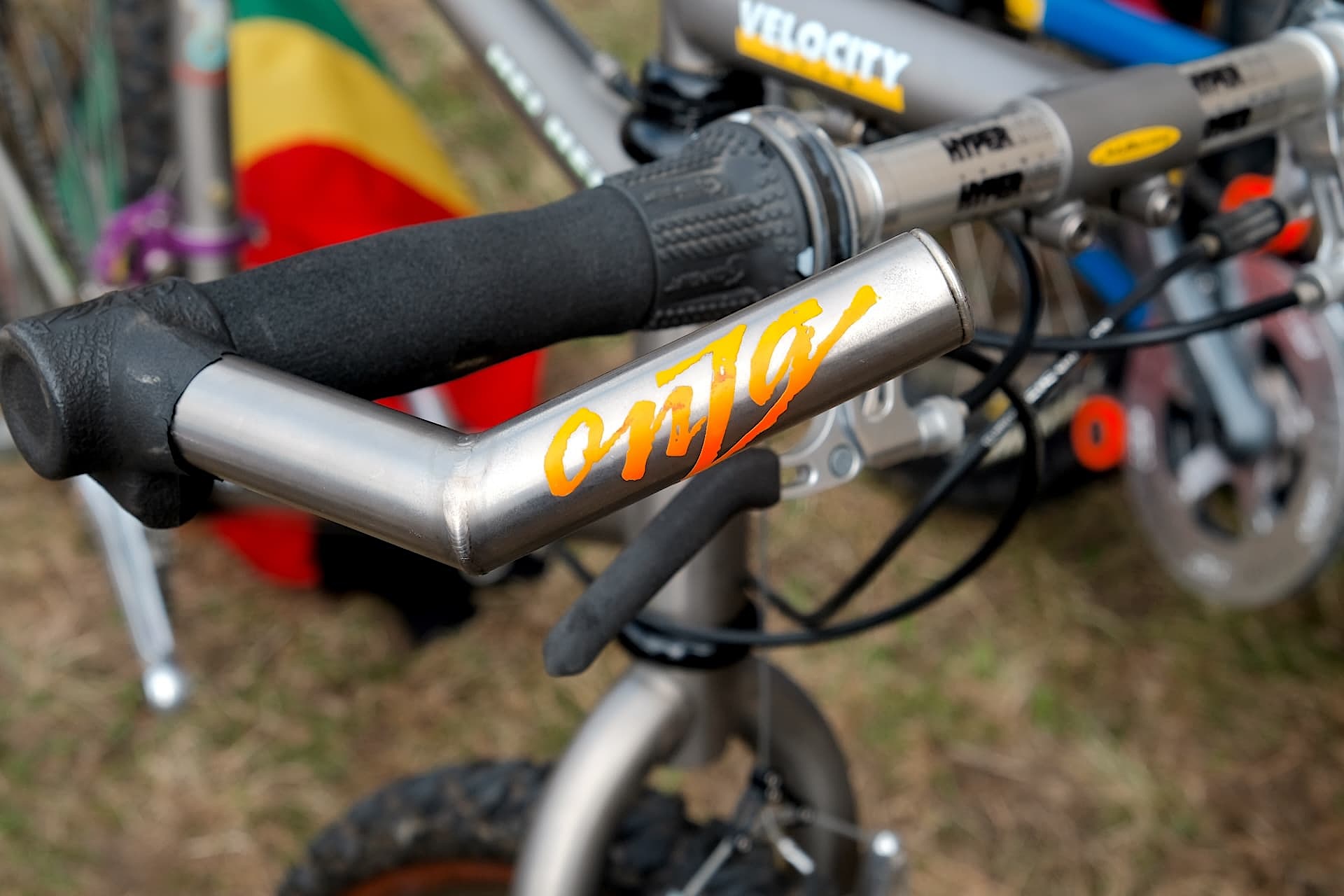 Yeah, I’m a really big Kona fan. I used to work in a Kona dealer and I’ve had many Konas over the years. The Hei Hei was something that just seemed like it was always out of reach and I would never get it. So to own one of these and have so many shiny titanium bits on it, yeah, this is probably one of my favourites of the whole collection. I used to use Gripshift X-Ray, bought with all the money that I earned doing paper rounds. But that was on a Raleigh M track, so that was a little bit different. This one’s just crazy light. I mean, I keep getting worried that it’s just going to get blown over in the wind.