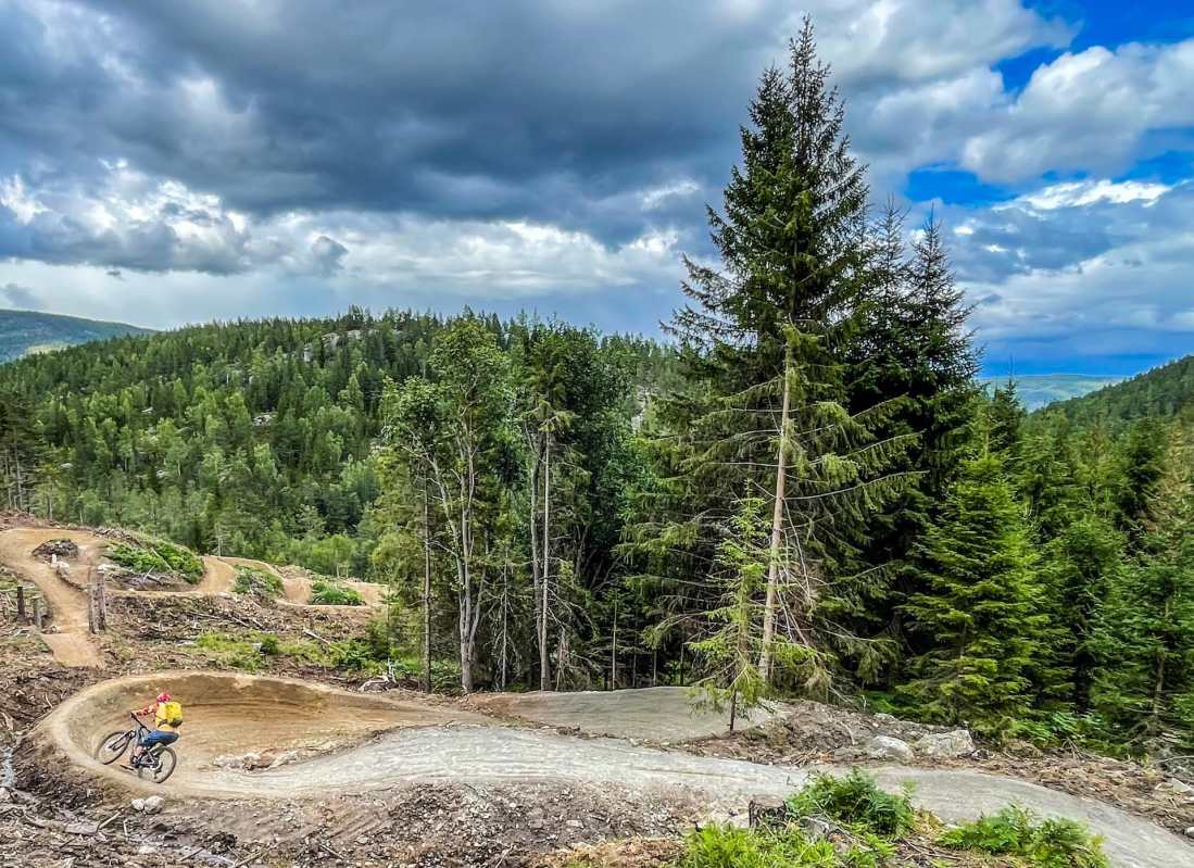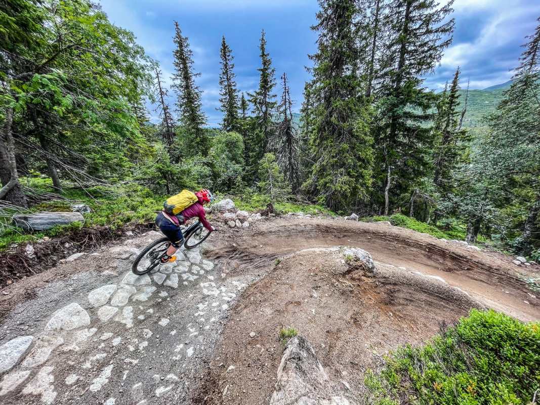 Norway is a land of lakes, fjords and mountains, houses with roofs that look like wildflower meadows… and Vikings. To the north is the Arctic Circle and closer to the south of the country is Fjell Park trail centre at Hogevarde in the Hallingdale valley, two hours northwest of Oslo. It is here, with its expanding trail network, and for now lacking an uplift, that Hans found the ebike perfect for climbing the mountain, pain-free, to then be able to enjoy the huge network of trails. Berms, rollers and flow carved through the natural landscape of pine trees, stream crossings and huge granite boulders that become part of the experience. Whatever the World Trail crew builds, the result is both eye candy and ride candy.