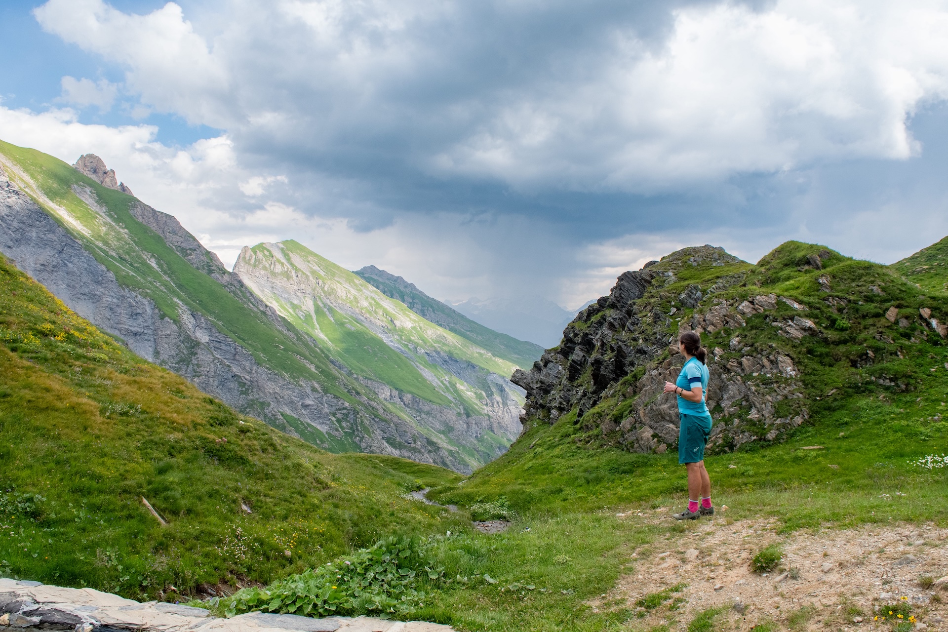 Previously, I quipped that everything would be fine. Unfortunately, there were two prerequisites not mentioned for this to be true. The first was a top-of-the-range head for heights. And the other was an absolute bargain-basement sense of self-preservation. As the trail became steeper and steeper, and then STEEPER in capital letters, I started to question many things, lots of which involved my life choices. A man with a long grey beard, shorts and the sort of hat that was in fashion in Manchester in about 1990 asked whether we were going to the Five Lakes, and looked slightly alarmed when we replied (in very shaky French) in the affirmative. He wished us luck. As we routed the corner, we saw why.
