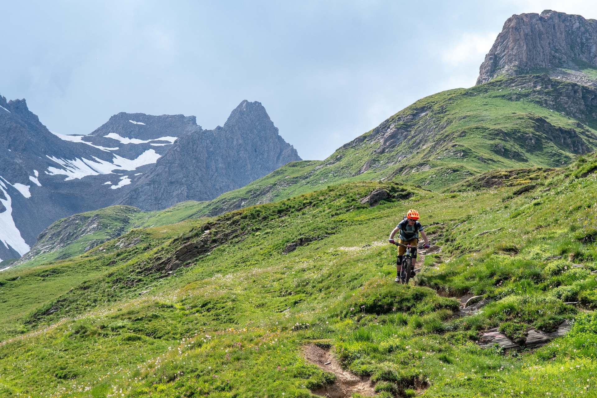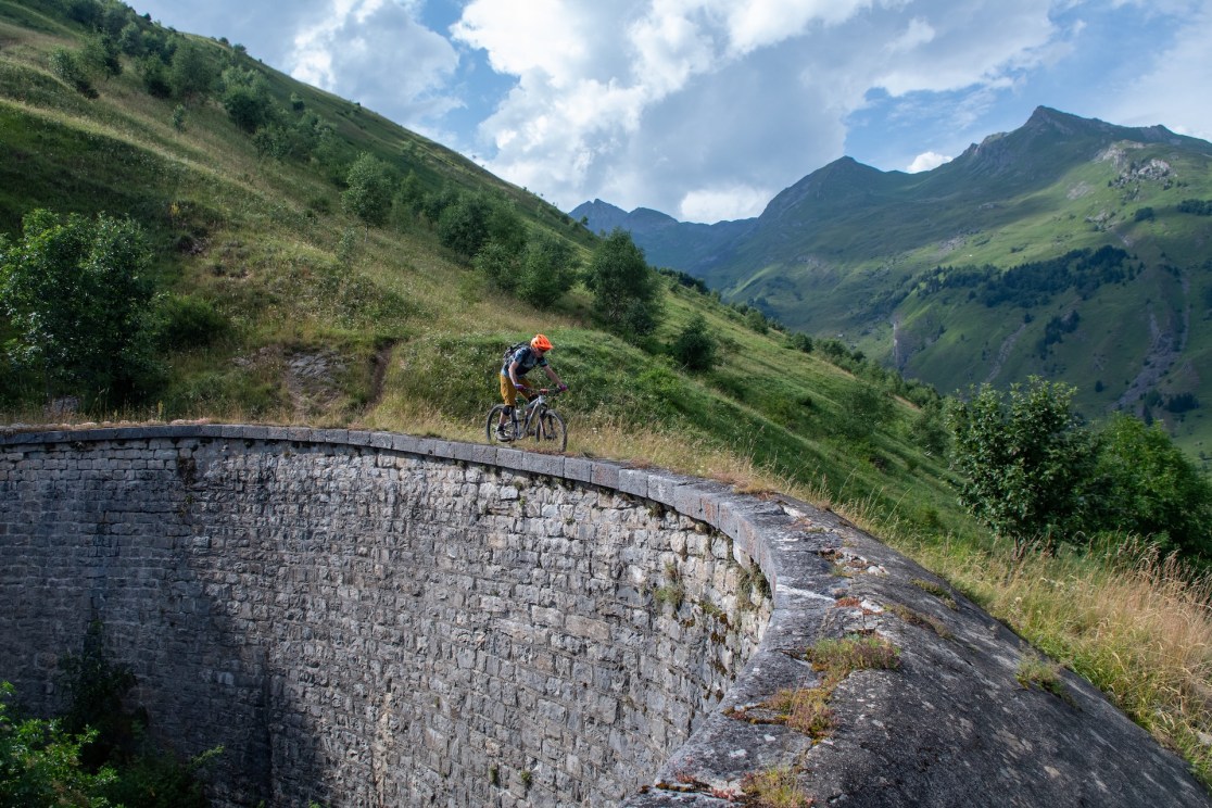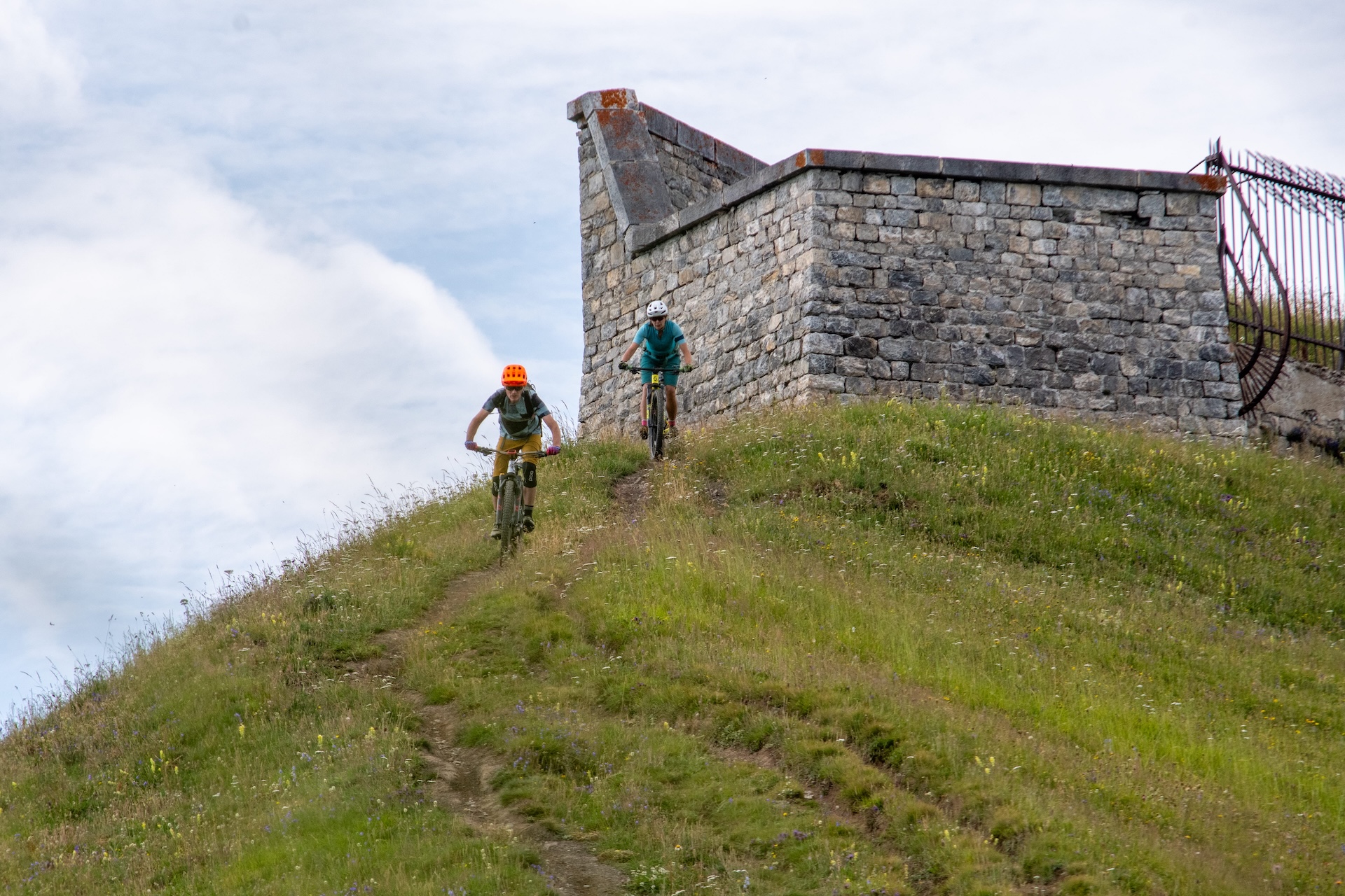We continued to drop down, past the fort, across a road and onto another treat – a truly superb slice of technical singletrack which switchbacks its way down the hill. Each corner was a different puzzle; there was just enough straight-line singletrack in between them to allow you to regain your composure before the next one. Here’s a two-stage stepdown; there, you need to hop your rear wheel once, twice. The next was a nasty little crevice that’d catch your mech off if you didn’t watch it; another necessitated a little more back-wheel hopping. Absolutely joyous. There was even more delicious singletrack; wooded, rocky, fast and exhilarating; slow and thrutchy, before we’re spat out at La Rosière for a gentle spin back to town and the obligatory celebratory beer and pizza.