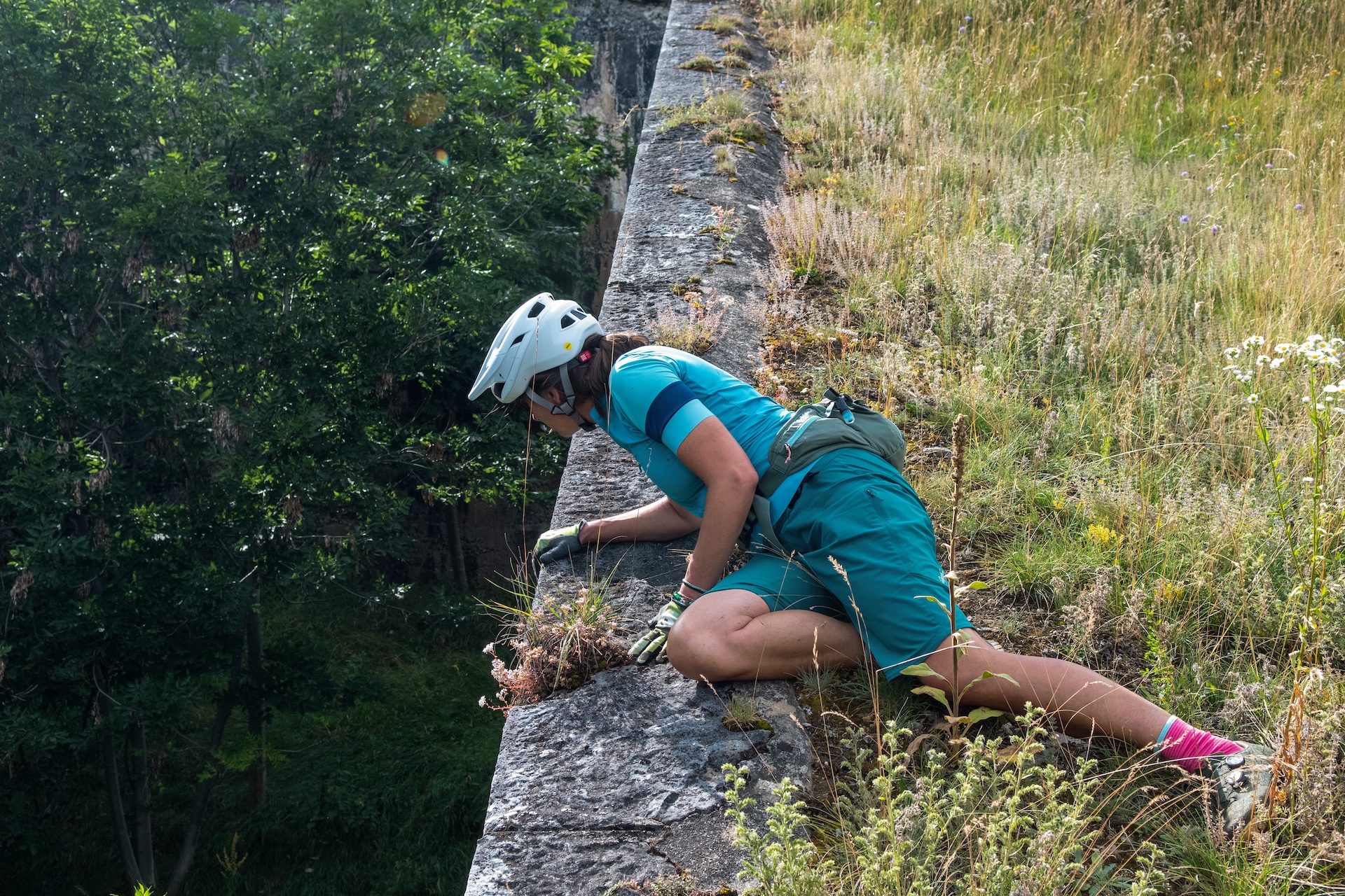 Raluca, perhaps the most can-do, letsjustgetonwithitshallwe of my companions, climbed the ledge first. James then passed bikes to her, and my role was to cower behind them pretending to document the moment by taking photos. It was an arrangement that worked well, especially for me.