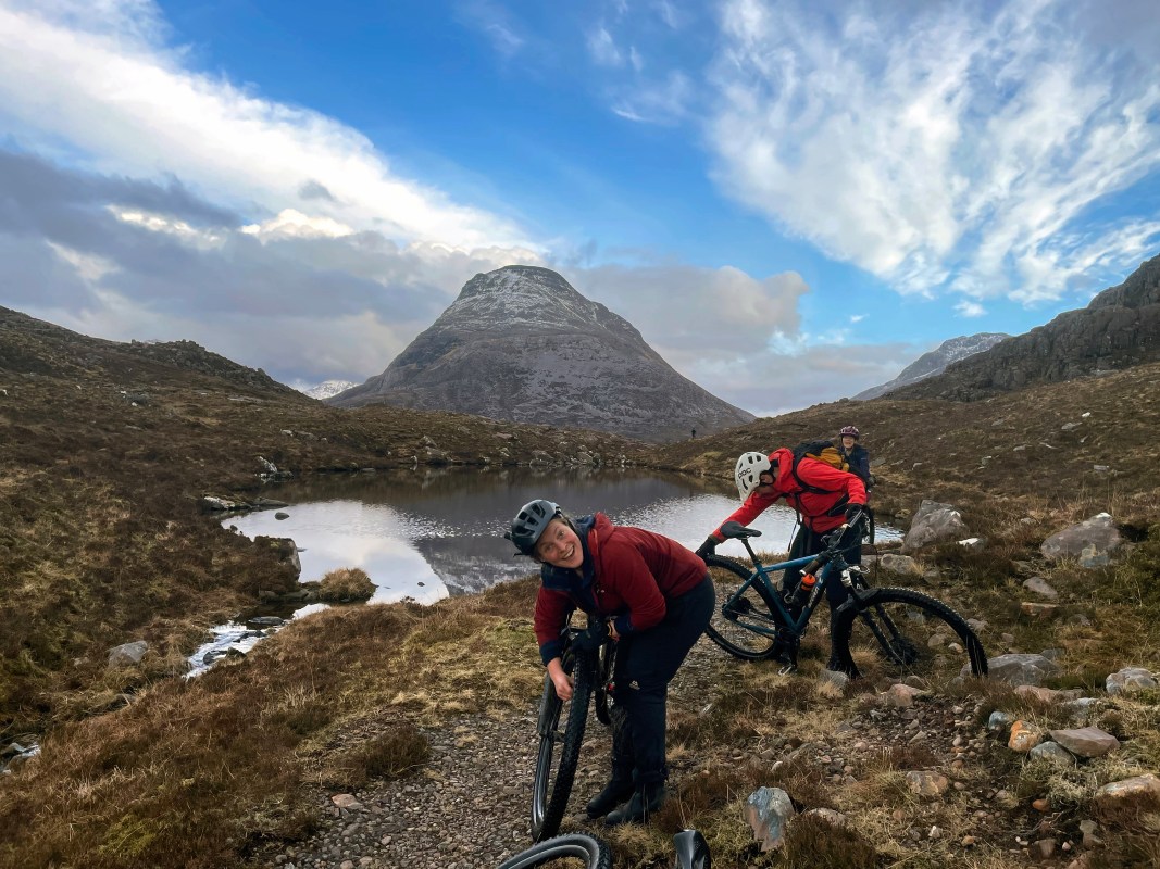 We had grown tired of standing on crowded start lines of bikepacking races surrounded by like-minded people all racing the same multi-day route but only actually speaking to them at the end once the racing was over. We were tired of the sleep deprivation and the discomfort of putting wet clothes back on in the fug of a soggy bivvy bag at 4am and eating crap food from petrol stations while riding. We still craved the physical challenge of long days on the bike travelling through wild places but we wanted to come back together with our friends in the evenings, eat proper food and dry our pants on radiators ready for the next day. So we devised a monster four-day route around the north-west of Scotland with optional mountain missions and ending each day at some of our favourite highland hostels. In our wisdom, the three of us decided we would also race our bikes while directing the event so we roped in Becky Waters to handle the daily logistics and be on hand for any emergencies.