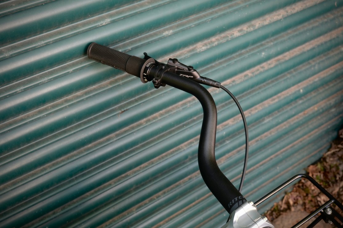 The stem I’ve got on there is Hope Straight, I think it’s the 090. It’s quite a nice, light stem, but I like the length with the geometry of the actual bike itself. The handlebars I’ve changed several times now, from the Ritchey Coyotes in silver to the Ritchey Coyotes in black, and now I’ve got the Buzzards, which I’m now pretty happy with. This bike, I wanted to build it in a way that it could lap up miles without really feeling too heavy, so it keeps me in a nice upright position and comfortable for real long days on the bike.