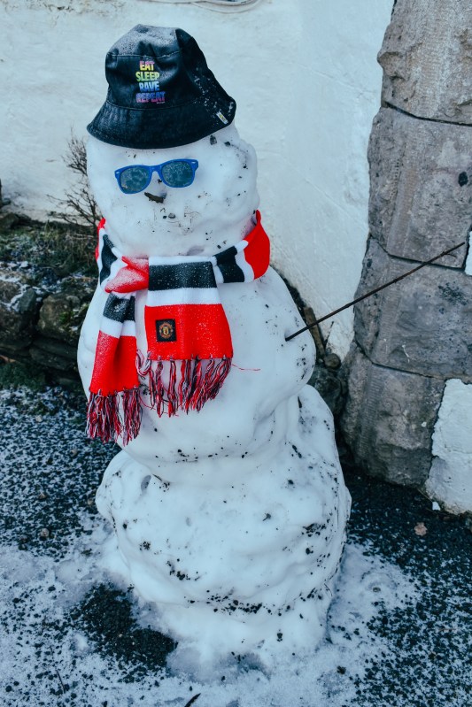 Mounting our fat bikes, we made our way down the ice-covered tarmac that would take us through Limefitt Holiday Park. Well situated in the heart of Troutbeck it cut a slightly eerie and forlorn figure, bereft of the holidaymakers and owners who give it heart and soul in the warmer months. The whole place was immaculate but the solitary snowman lent a curious sense of melancholy. “Don’t you be twatting yourself on that ice!”, I shouted over to James. Having forgotten his helmet, he opted to ride like it was indeed 1985. He seemed appreciative of our supportive comments that if he came off and he needed rescuing for a head injury, we’d wait for him at the nearest available pub. If he was lucky, we might consider giving him a small piece of Kendal Mint Cake, albeit the strangely brown and not chocolate-covered one, to sustain him while he awaited the Mountain Rescue. We aren’t cruel, you know.