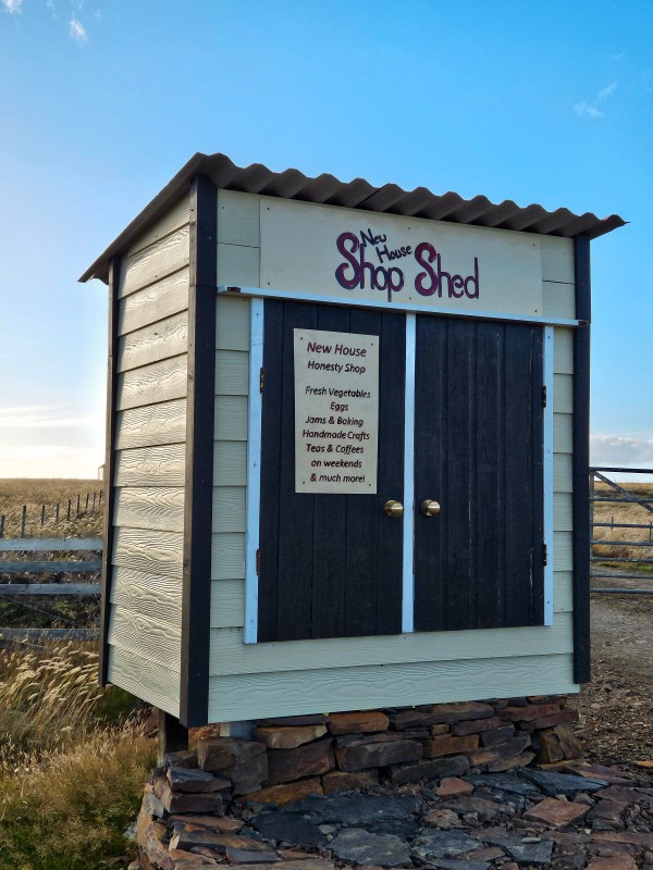 The opportunity for a snack stop came at New House. There’s a small ‘shop’ on the roadside, which usually stocks soft drinks, locally made fudge and biscuits. Locally grown produce is available in season too. You simply put your money in the honesty box for your purchase. The ‘shop’ is open 24/7.