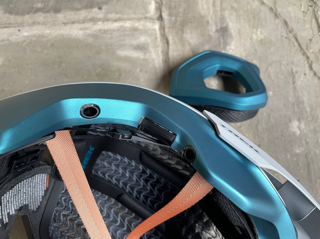 This Trek Blaze helmet doesn’t go down the Mips route, instead it uses WaveCel: a clear plastic mesh inside the helmet. Aside from its alien appearance WaveCel serves similarly to a crumple zone in a car. It’s designed to compress and deform in a crash to reduce rotational impacts and distribute stress over a wider area.