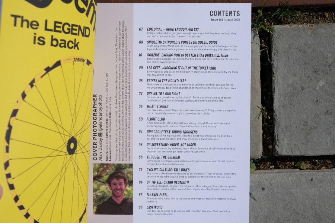 What’s in it? Morzine and Les Gets travel guide… Can bikes have ‘soul’? Can only steel bikes have soul? How about new bikes? Can you add to it, or does it drain away if not topped up?… A few issues ago, Steve Aspinall was sailing through the air with ease and encouraging you to join him. Then it all came to a sudden stop… Riding pants? Riding trousers? Call them what you will, they’re a great way of keeping the brambles out and the pads up… Our endurance racing stalwart, Jason Miles comes out of self-imposed exile to discover that everyone got faster while he was away… Why would you make a bike harder to ride and to get on and off? ‘Just because’, seems the perfectly reasonable excuse cited by disciples of the Church of the Tall Bike… Creag Meagaidh, to give it its full name. Munro-bagger Sanny teams up with MunroBiker to tick another peak off their iSpy book of big Scottish mountains.