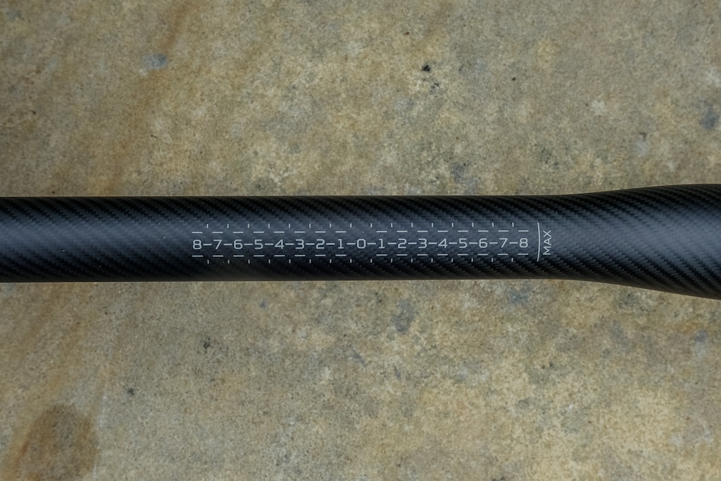 Hope’s carbon bar is finally available in a higher rise (35mm) option. 800mm wide, cut marks for custom, 5° upsweep x 8° backsweep, 245g, laminate design with varying wall sections for “enhanced material efficiency”, alignment grids for easy clamps setup, and apparently a “fully recyclable manufacturing technique”. Which is nice.