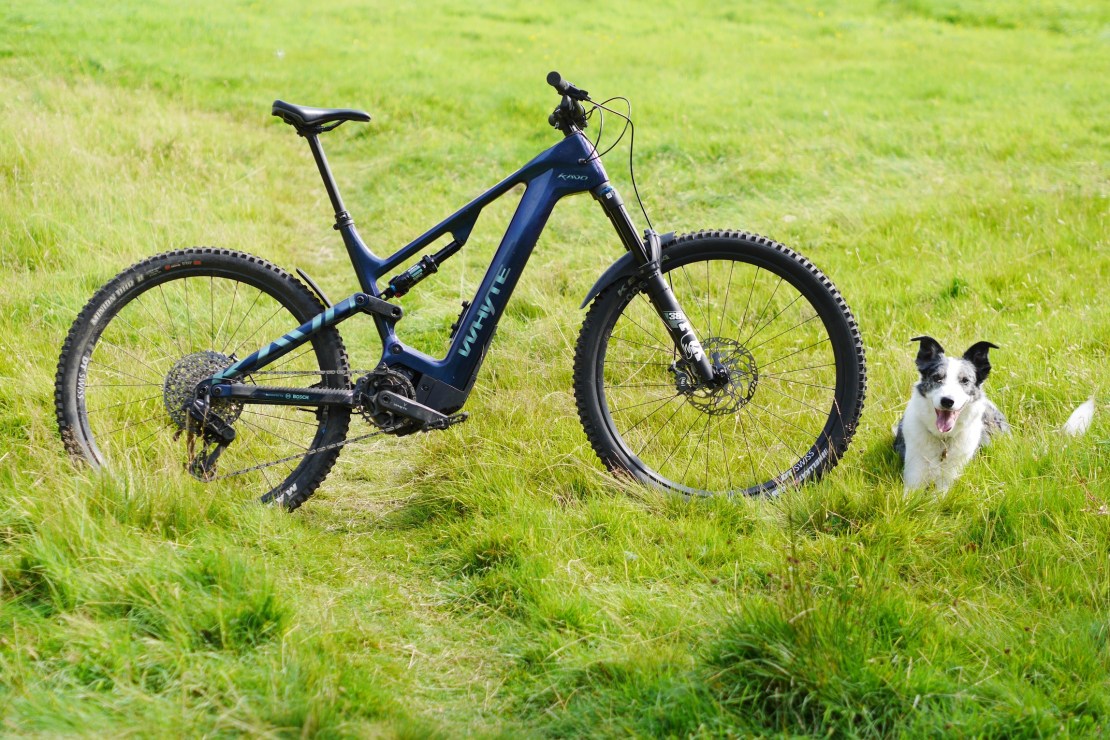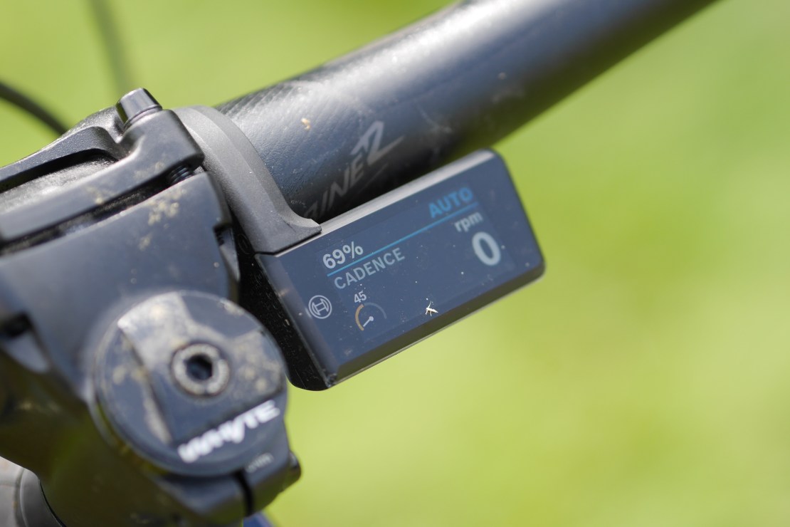From the other week’s black Whyte hardtail to this week’s blue Whyte e-bike. The curiously named Whyte Kado (kar-doh? ka-doo?) is a full-power full-range trail eeb with 160mm travel fork up front and 150mm travel at the rear. Carbon frame. Latest firmware 5th Gen Bosch Performance Line CX with 100Nm of torque and 750 watts of peak power. Key geo numbers: 64.4° head angle, 77.5° seat angle, 450mm chainstays, 510mm reach (XL), 470mm seat tube (XL). Things of immediate note: the rotated rear shock, the flat mount caliper mount, 34.9mm KS Vantage dropper with novel under-the-saddle travel adjust (and markings) that is actually really good.