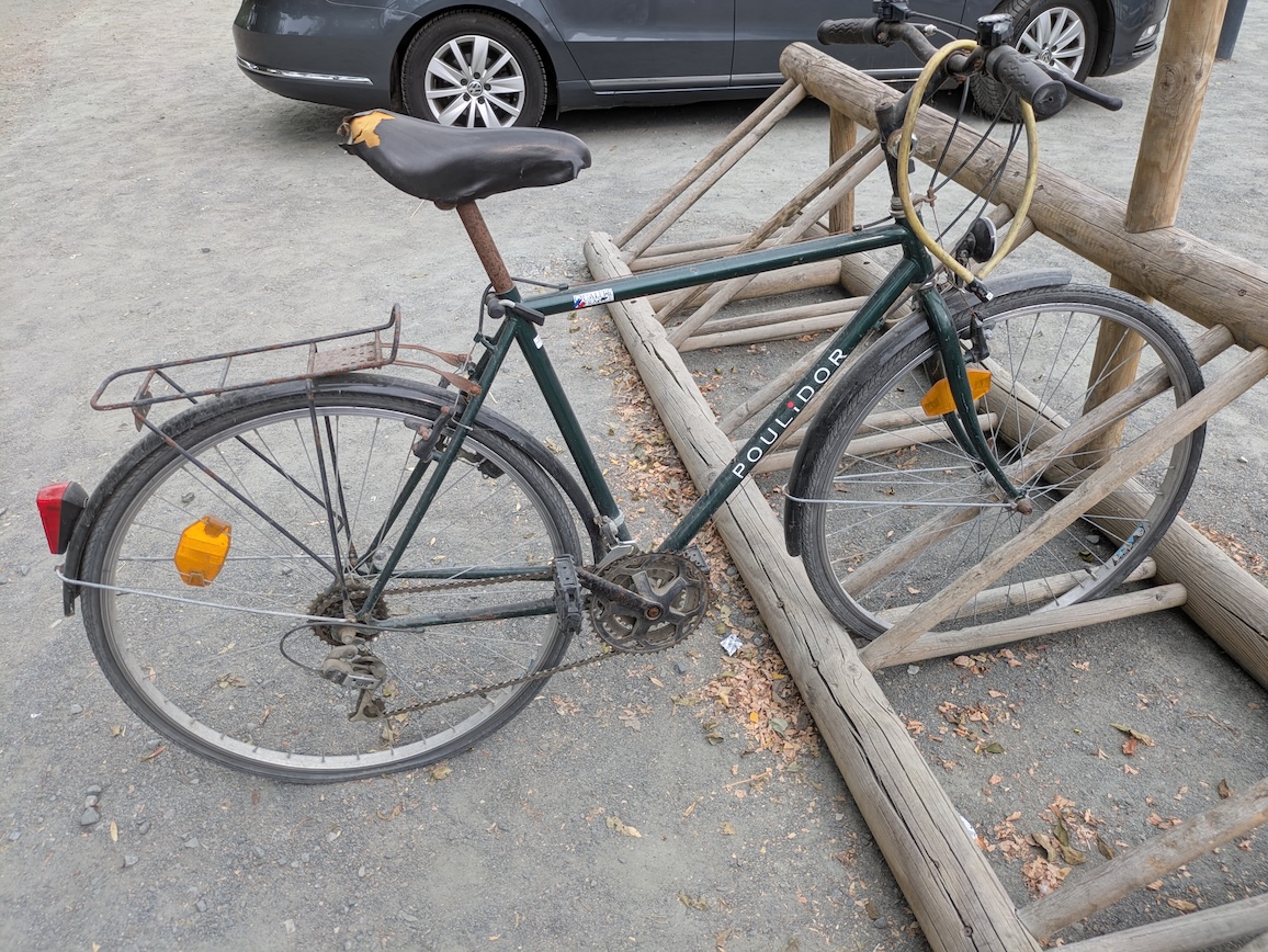 Summer’s over. Ah well. Top-to-bottom: a seemingly abandoned Poulidor bike that I very nearly stole; the Thule Easyfold 3 with its +1 rack did itself proud; an early Bosch electric motor spotted in the Saumur Tank Museum; the winning beer of the holiday; snaking along a troglodyte-tastic cycle route; another attempted bike theft narrowly averted.