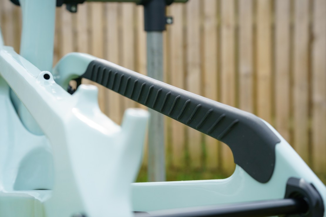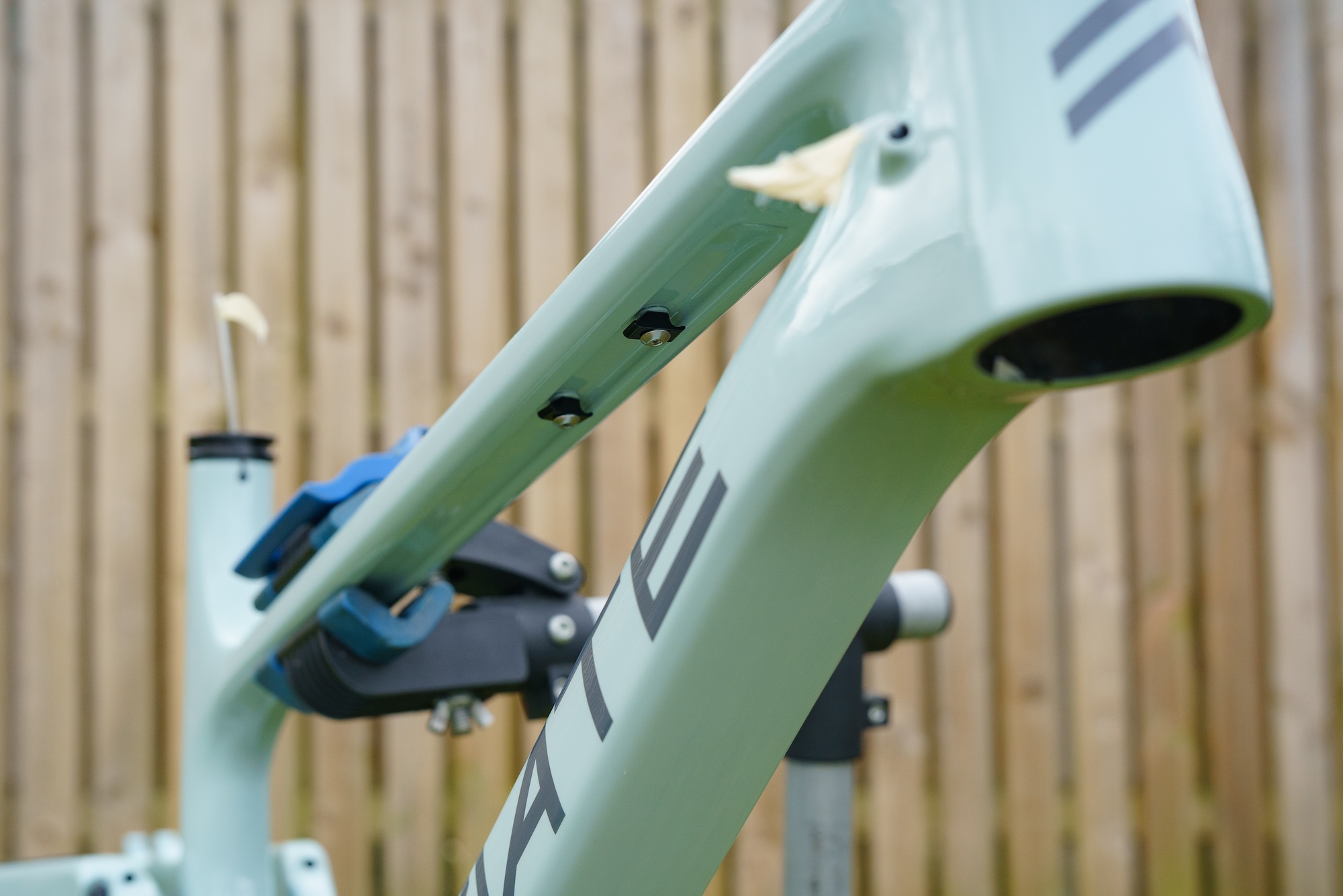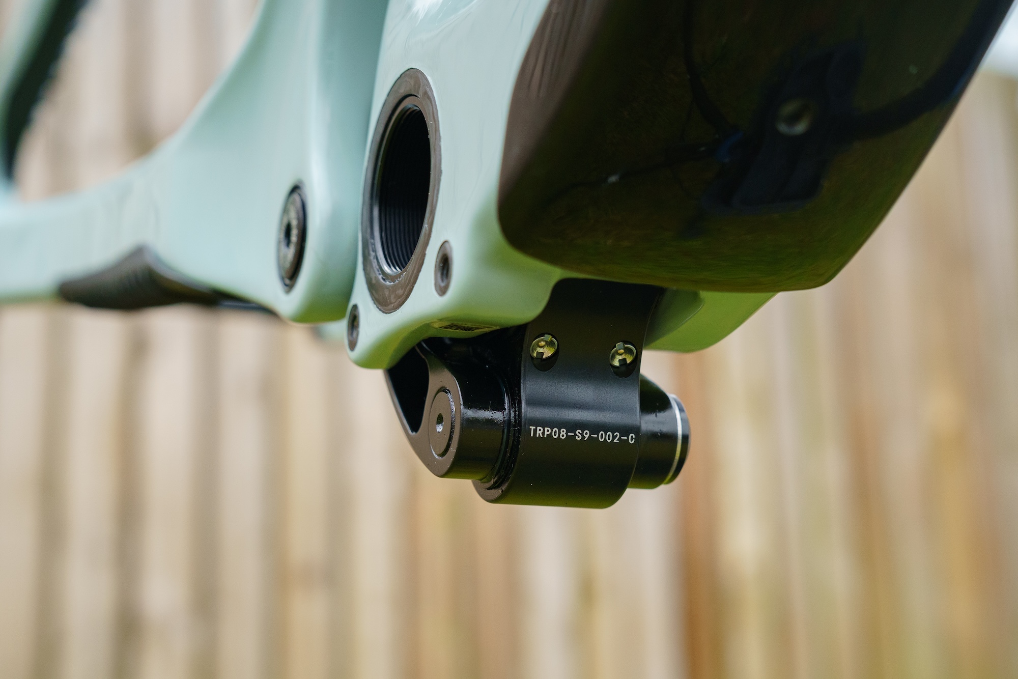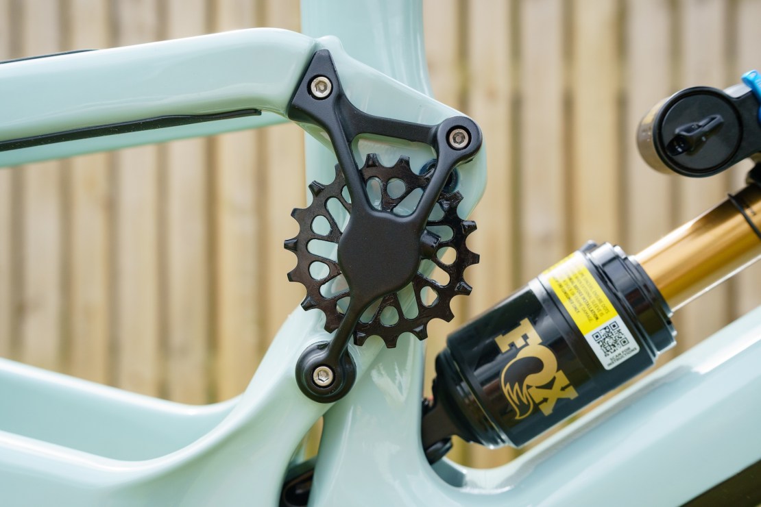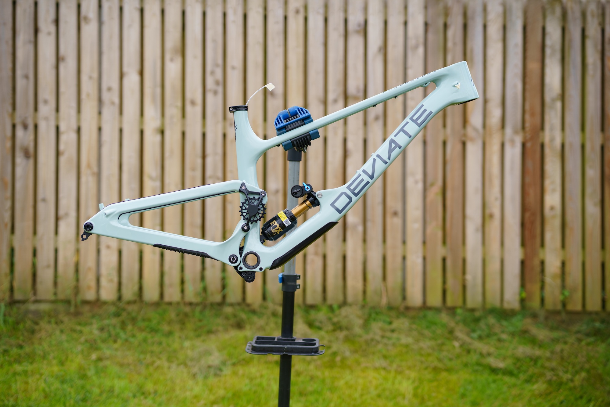 Yes, we have had one of these in before. Read our Deviate Highlander II review from last August. This particularly pistachio piece is for our pixel-pushing SuperTog James Vincent. What’s the 4-1-1, you very probably don’t ask? The Highlander II is a 145mm travel carbon fibre trail bike with a high pivot idler configuration. In a (pistachio) nutshell: traction for days, masses of standover, excellent climber.