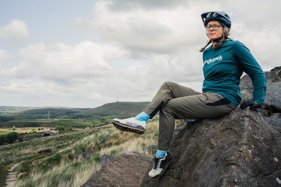 These are tough enough to withstand abrasion, but light enough for pedalling. Ventilation comes in the form of stretch mesh panels at the ankles, hips and fly. The ankles are perhaps a touch restrictive – a zipper here might be nice. The ratchet fastener keeps your trousers up, but doesn’t really provide any significant waist adjustment without bunching the front fabric. There’s no stretch in the waistband either, but bonus points to Fox for making generously sized women’s trousers. They’re nicely large around the waist, with the 14 feeling like it’s a 14–16 rather than a 12–14. I do like things a touch loose, but these are on the big side – consider sizing down. They’re long enough for my legs (I like a 32in or more in jeans), which is a rarity in women’s pants. Worth a look if you struggle for that sizing elsewhere.