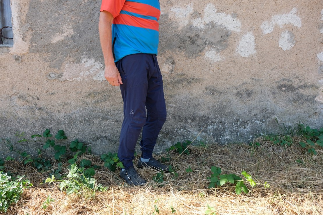 The Havoc trousers are tapered, but not skinny teenager style. There’s definitely enough room for pads, and the ankles are trim, but not so tight as to be a struggle on or off. There are two jeans-type pockets – not quite deep enough that I’d trust them with cash or keys, but OK for a snack. There’s one further pocket on the right thigh, big enough to take a phone in a case. In defiance of conventional phone pocket traditions, though, it sits on top of your thigh, rather than just behind it, so there’s a bit of phone slapping when you pedal hard.