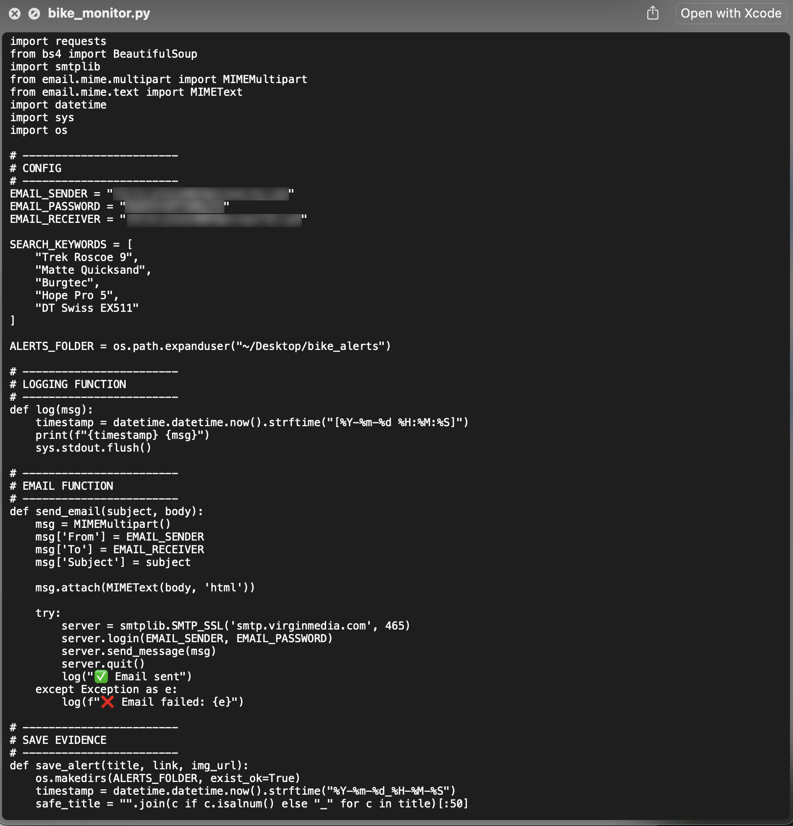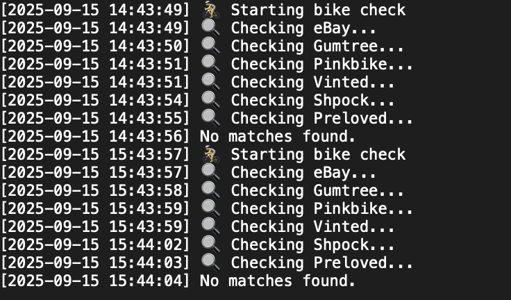 “It didn’t work at first and had some errors, which I fed back and then GPT fixed it. It logs all searches, anything that matches my bike, visually and spec list and I get an email response with link to destination.”