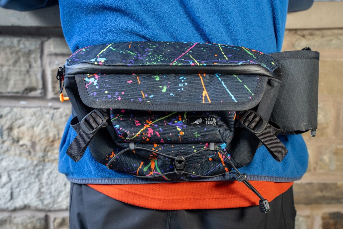 A sizable 4.8L capacity hip pack, plus the optional bottle holder. Made in London, which partly explains the price tag. This thing is impressively designed and constructed. We particularly like the molle anchoring method for the bottle holder, which feels more more stable and trustworthy than most. And we’ve not encountered a Fidlock Hook main buckle before, which is nice. Sufficient organisation inside, bungee stowage underneath outside, cinch straps at the sides. And available in plenty of pleasingly well executed colourways.