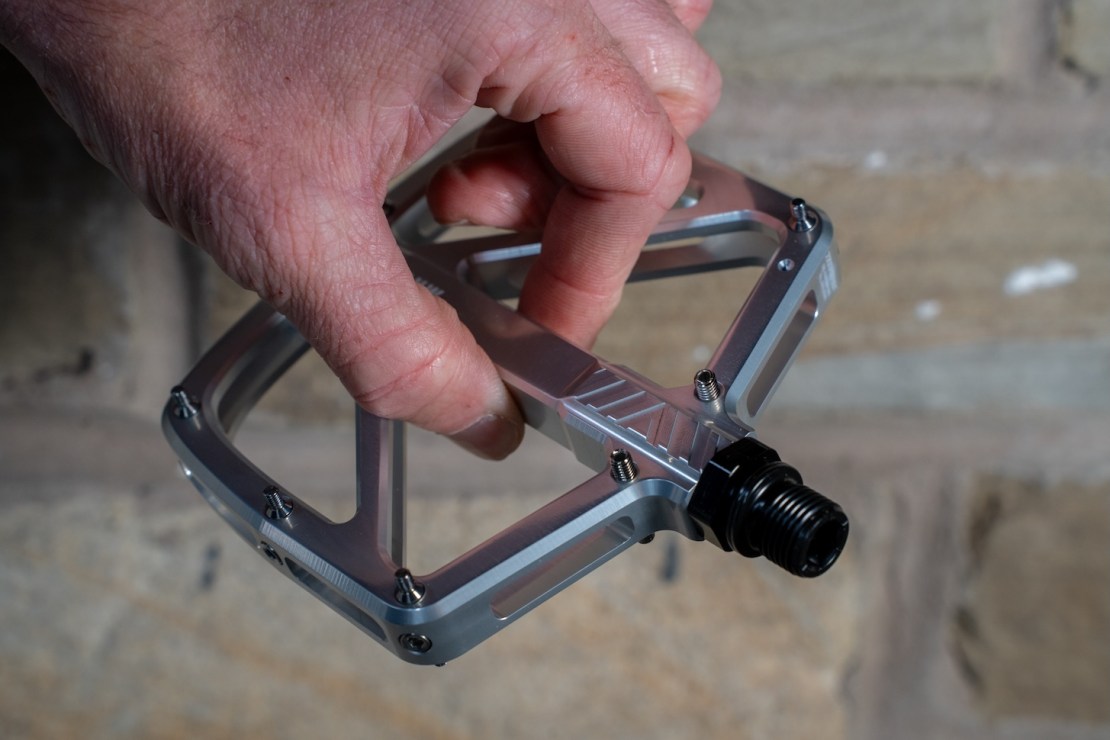 Truth be told, I am not a massive fan of the Gen 1 Loam pedal. I was alright, but nothing more than that. My main issue was that the leading outside corner was rather too cut-away; apparently I use a lot of the leading corners of my pedals when riding my ATB. Anyhoo. Here is the Star Trek Next Generation version of the Loam. Thicker. Squarer (not as stand-mixer blade shaped as before. And let’s be frank, they look really, really cool. Which is half the battle in a sea of decent flat pedals. Also available in Blackout Black, Blood Orange, Moss Green and Fruit Snacks (purple), as well as this winning Lightning (silver).