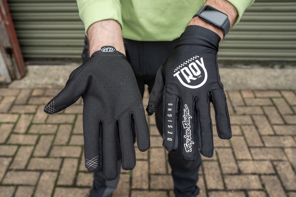 Minimalist hand shrouds from the house of Troy Lee. Ssingle layer palm. Micro-mesh elsewhere. Touchscreen thumb and index finger detailing.
