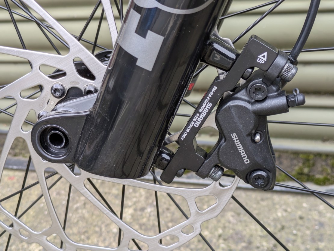 Shimano Deore brakes are always remarkably good for their price and especially with the whopping 220mm rotor on the front. I have zero complaints about brake performance. The SLX drivetrain did cause some complaints with jumping and slipping off the jockey wheels after a while, but nothing new cables and better maintenance couldn’t solve.