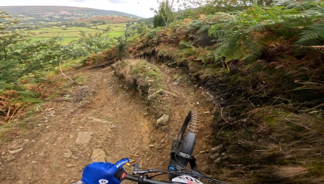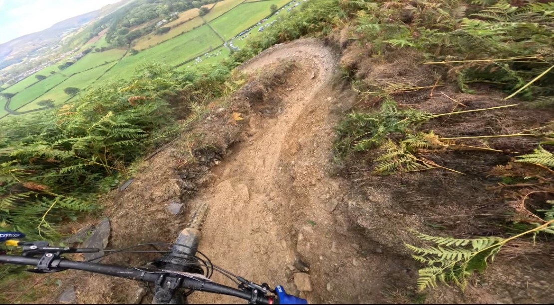 Stage 3 then finished with a short sprint followed by some flat corners in the woods. You then exited the woods over a drop, pedalled into another drop then turned left on the grass for a risky finish with good potential to throw the whole run away.