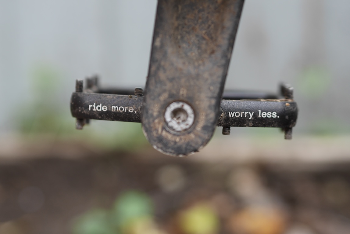 We forgot to get pics of these when they were box fresh. And before I removed the central pins too. Soz. In a market of seemingly countless flat pedals it’s hard to stand out. The overall vibe of these flatties from Acros is compactness without too much compromise. They’re pretty un-wide (108.6mm) but are quite long fore-aft (144.5mm). And at 12mm thick they’re pretty thin without being totally ‘waffer theen’ to the point where bearings and concavity become iffy. I’ve installed them on a 29er ebike that I’ve guerilla-bodged into a mullet – so I need all the pedal strike avoidance assistance I can get!