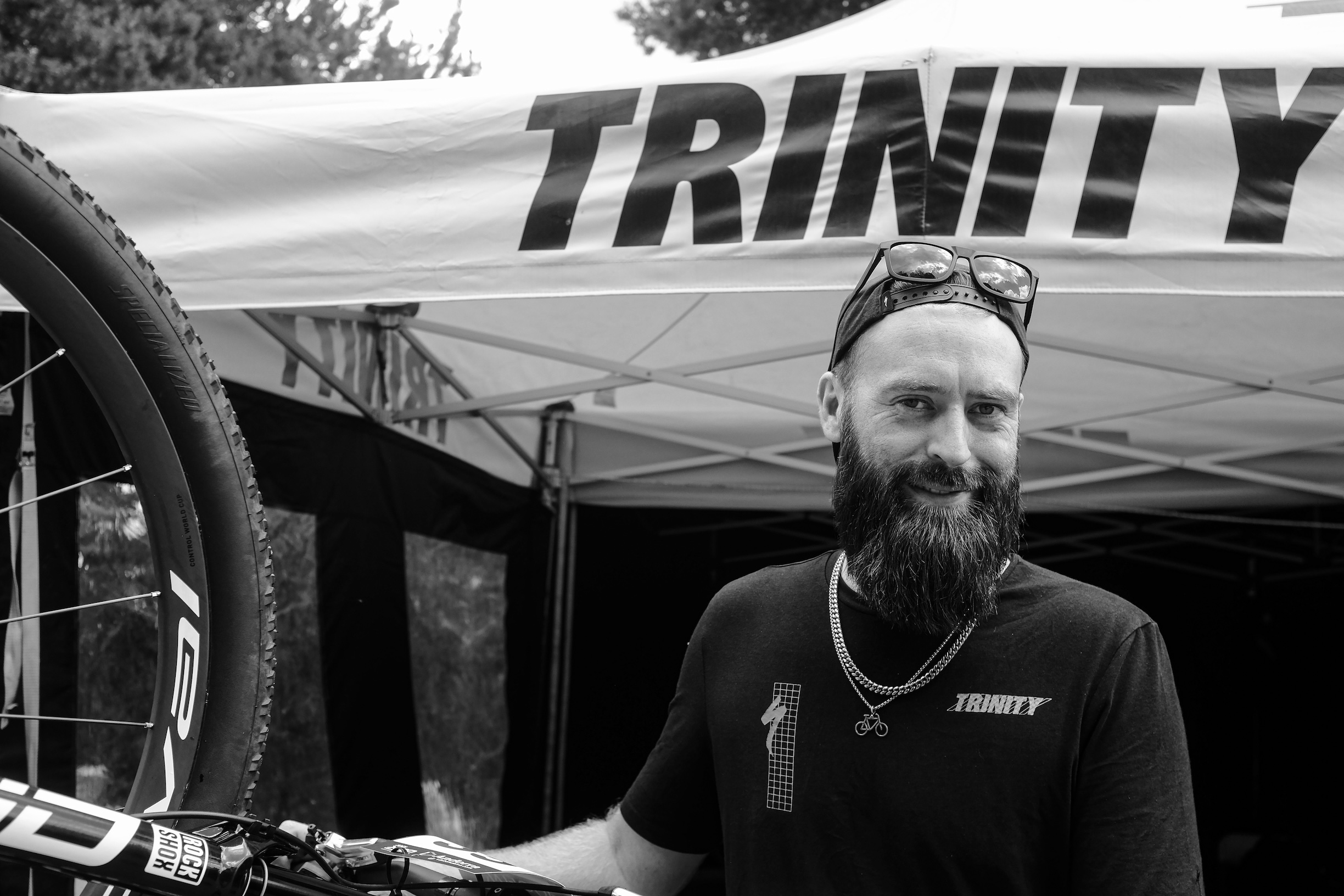 Aaron Mc Cann is an imposing character. Six foot something, with a ZZ Top beard and chunky gold chains around his neck, he looks like a figure that you’d find quietly, but very firmly, escorting you from a bar after you’d had a couple of pints and danced on a table or two. Yet this scary-looking Irishman is bike fixer, confidante, bottle holder, line choice sage and solid grounding for several young and upcoming riders on the Trinity Racing Team as they take on the UCI World Cup cross-country races around the globe this year.