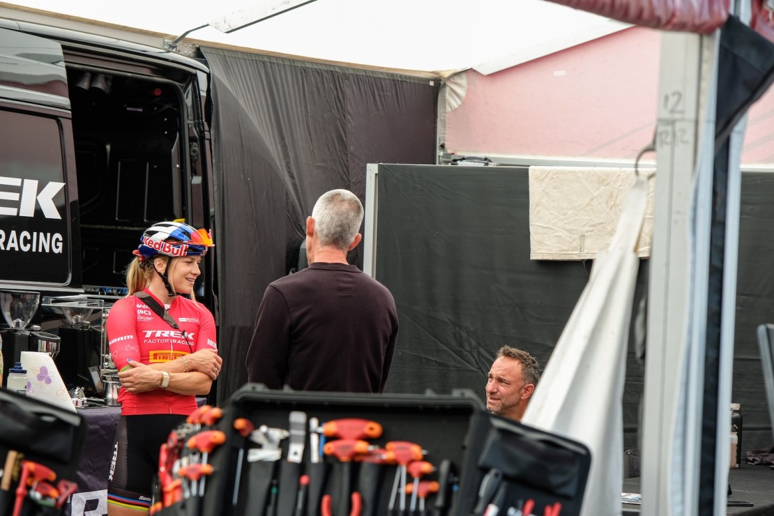It’s very important to ride the course. We usually take turns to go out because you have riders coming back with feedback on the course. It’s good in your own head to know about gearing or suspension. You can then direct them on bike setup. We get out on the ebikes for a couple of practice sessions. Then the rest of the staff arrive Wednesday night. A quick look over the bikes and get everything ready to train on for Thursday.
