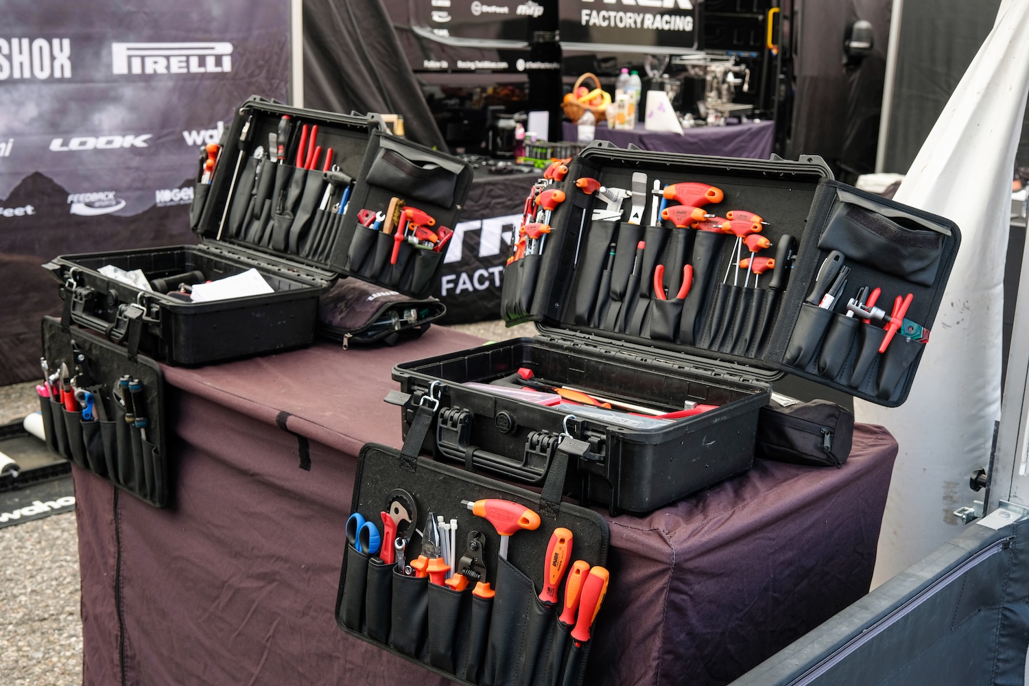 I’ve always had a great deal of respect for World Cup mechanics; usually working out of a suitcase toolbox and EZ-Up in a side carpark just away from the main arena, they’re always the first to show up, as the race village sets up around them. While the winners are still drinking Champagne out of their Crocs, these hard-working men and women are cleaning bikes and re-packing vans ready for a day off (if they’re lucky) before heading to another different part of Europe to do it all over again. And those are the easy rounds – we’re not even talking logistics of getting team bikes, toolboxes and people to South Korea or Brazil…