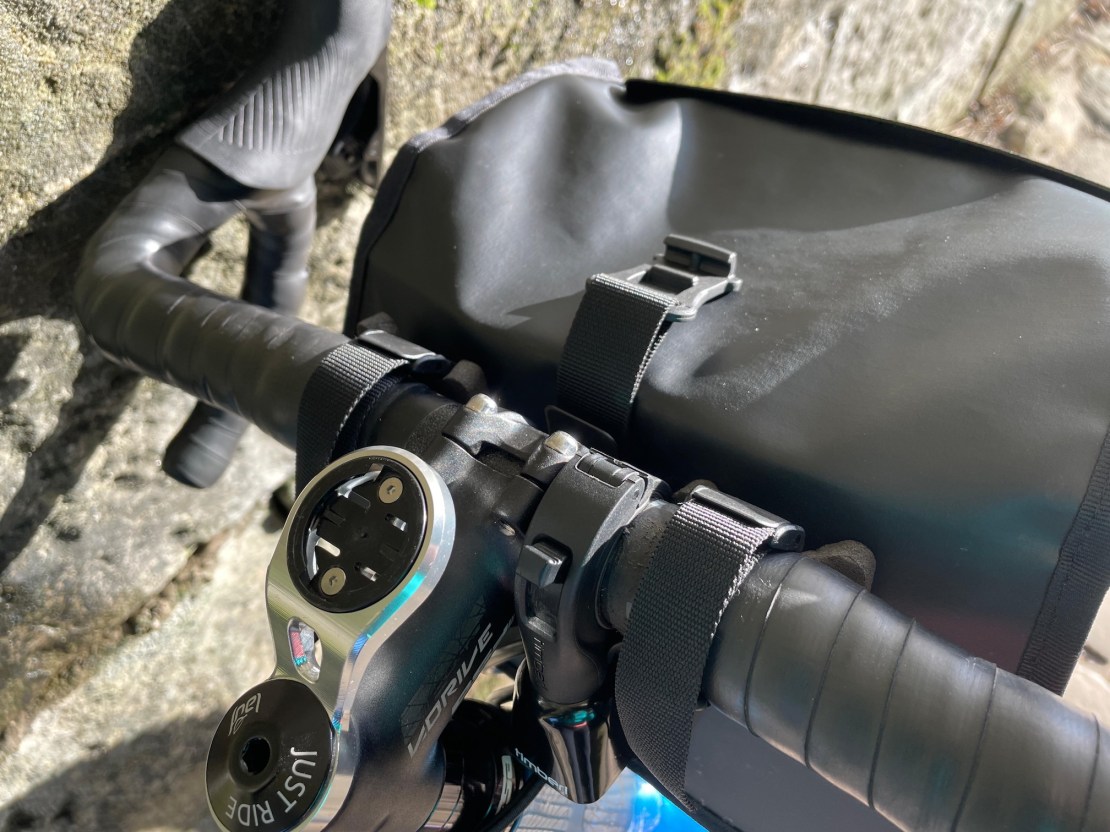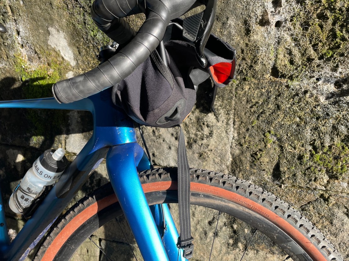 I also have an Ornot cannister bar bag and it’s a lot better (but crazy expensive with import duty & shipping), I use that on my gravel bike but wanted a cheaper alternative for my road bike over winter (to give me more room for stashing jackets/layers/spare gloves/extra food etc.) the Restrap one just about works for that but depends if I can get my Strada light securely out-front mounted, if not I’ll have to look for another solution (to be fair it probably wouldn’t work any better with any other bar bag due to the straps)