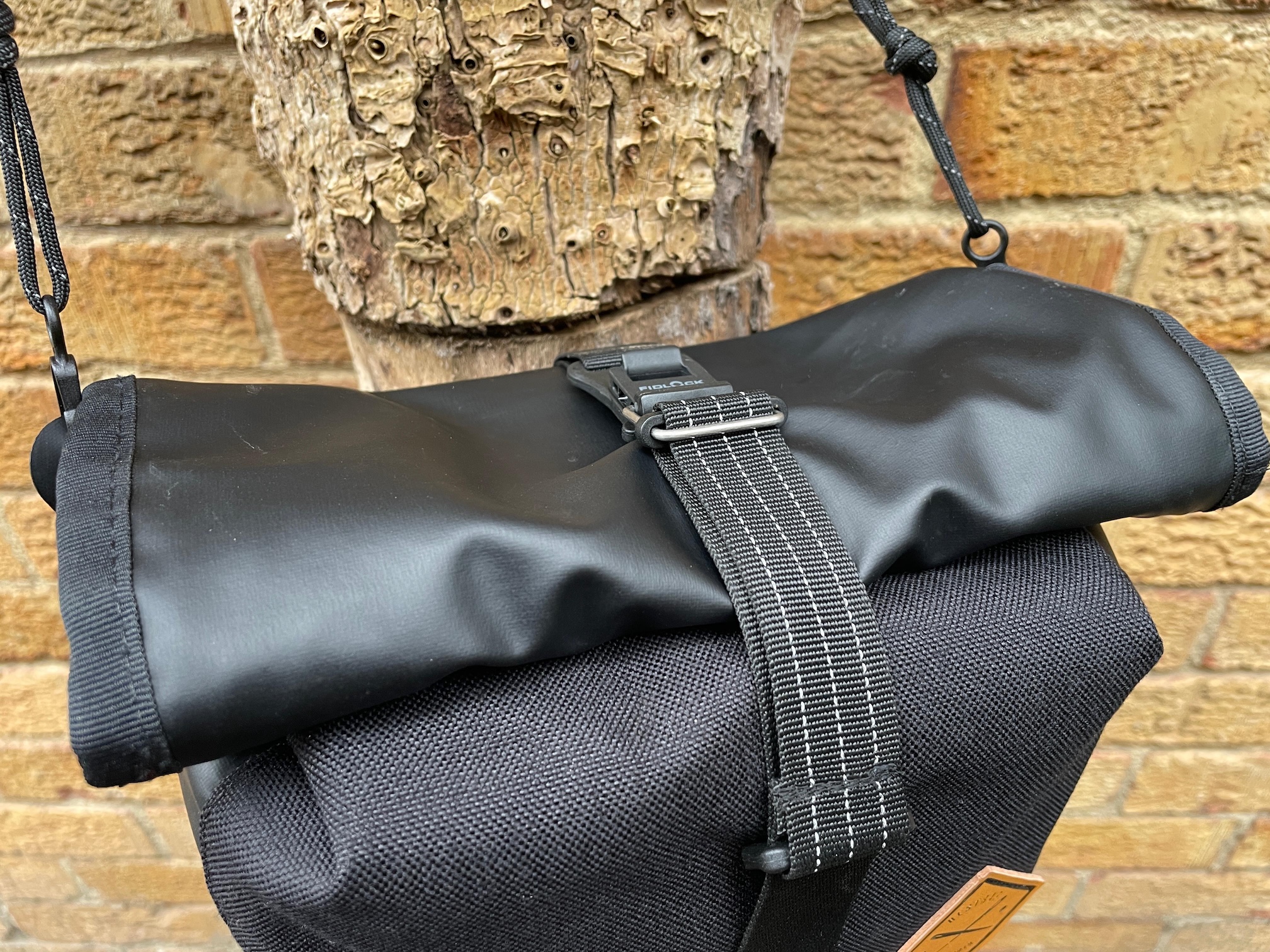 I bought one of these earlier this year (also have their smaller cannister bag and bigger ‘bar bag). I love this roll top bag! I’ve used it in all weathers on my end-to-end ride, and I’ve found it to be the perfect size for bits and pieces you might need during the day: hat, glasses, wallet, lock, snacks, light jacket, etc.