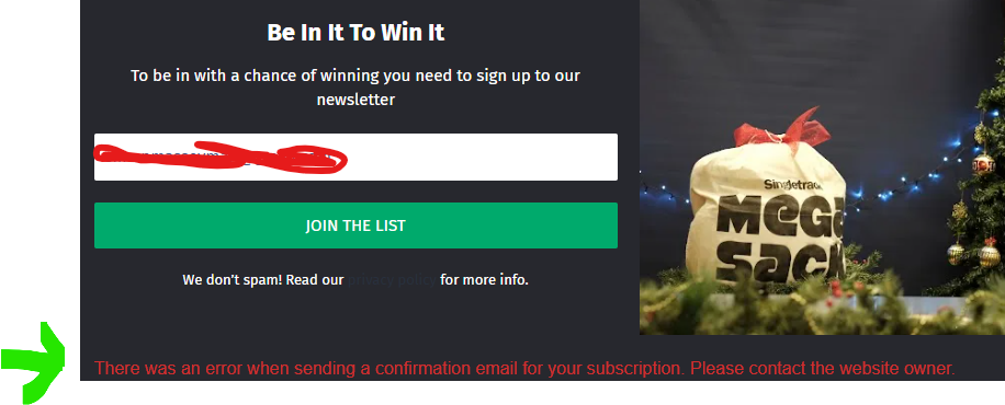 There was an error when sending a confirmation email for your subscription. Please contact the website owner.
