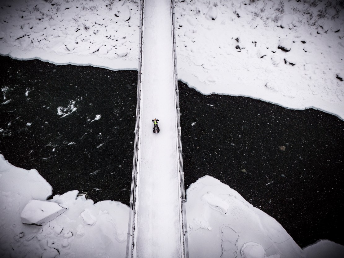 To say cycling in winter is always enjoyable would be a lie. But for me personally, the rewards for taking on the challenge are much greater than in any other season. Especially if winter means multiple inches of snow and frozen rivers and lakes, which is what I experienced most of the time on this nine-day trip. With the help of a drone, this wonderland looks even more stunning. The only downside is mild frostbite on day five, as the joysticks on the drone controller require me to fly with bare hands.